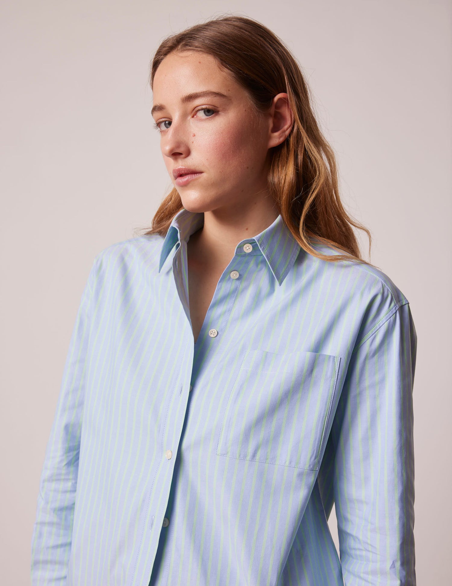 Notre chemise signature à col droit ouvert, déclinée dans plusieurs coloris et matières.