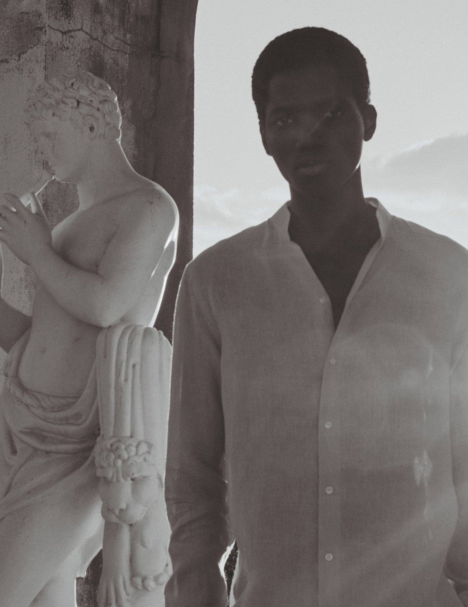 Notre chemise signature à col droit ouvert, déclinée dans plusieurs coloris et matières.