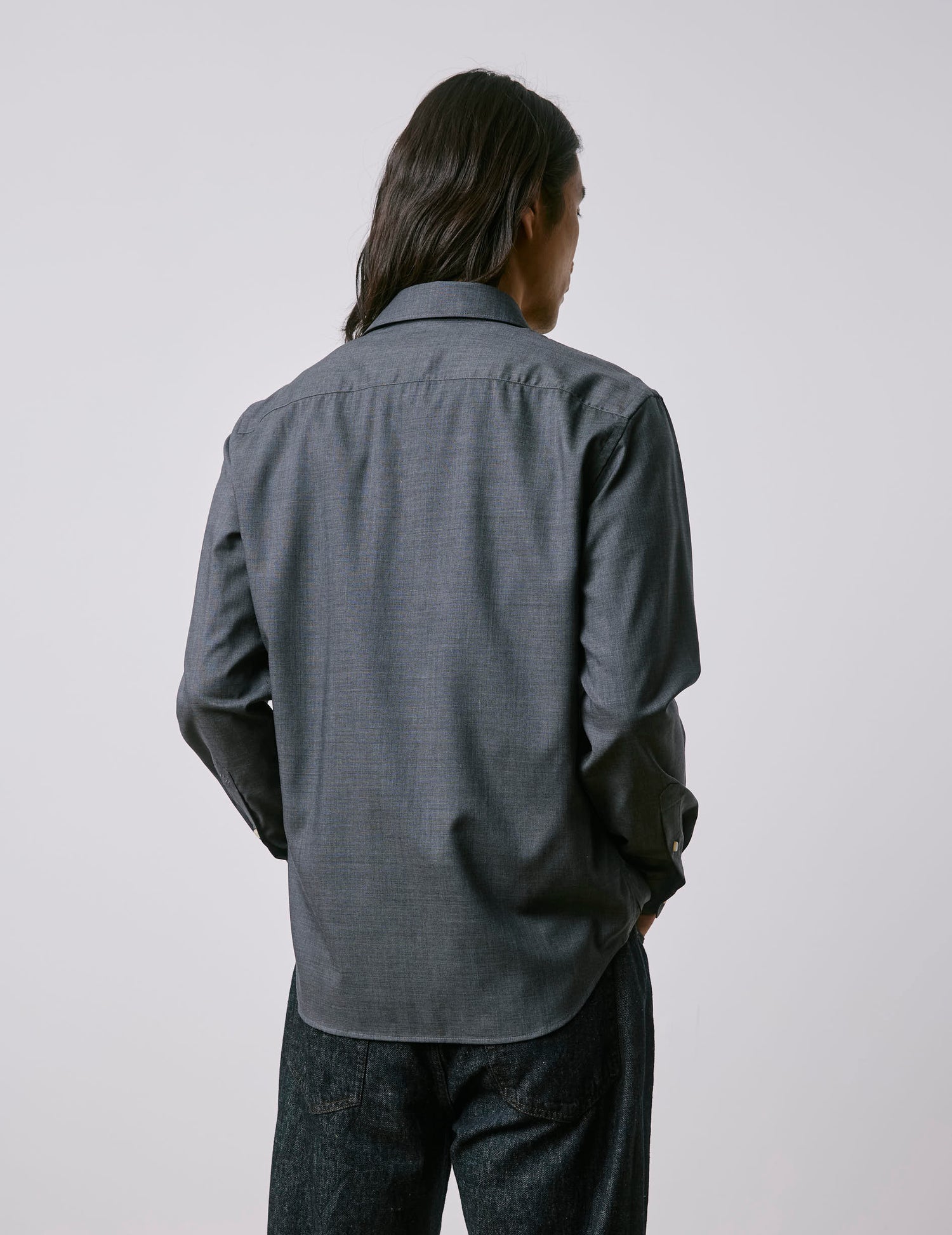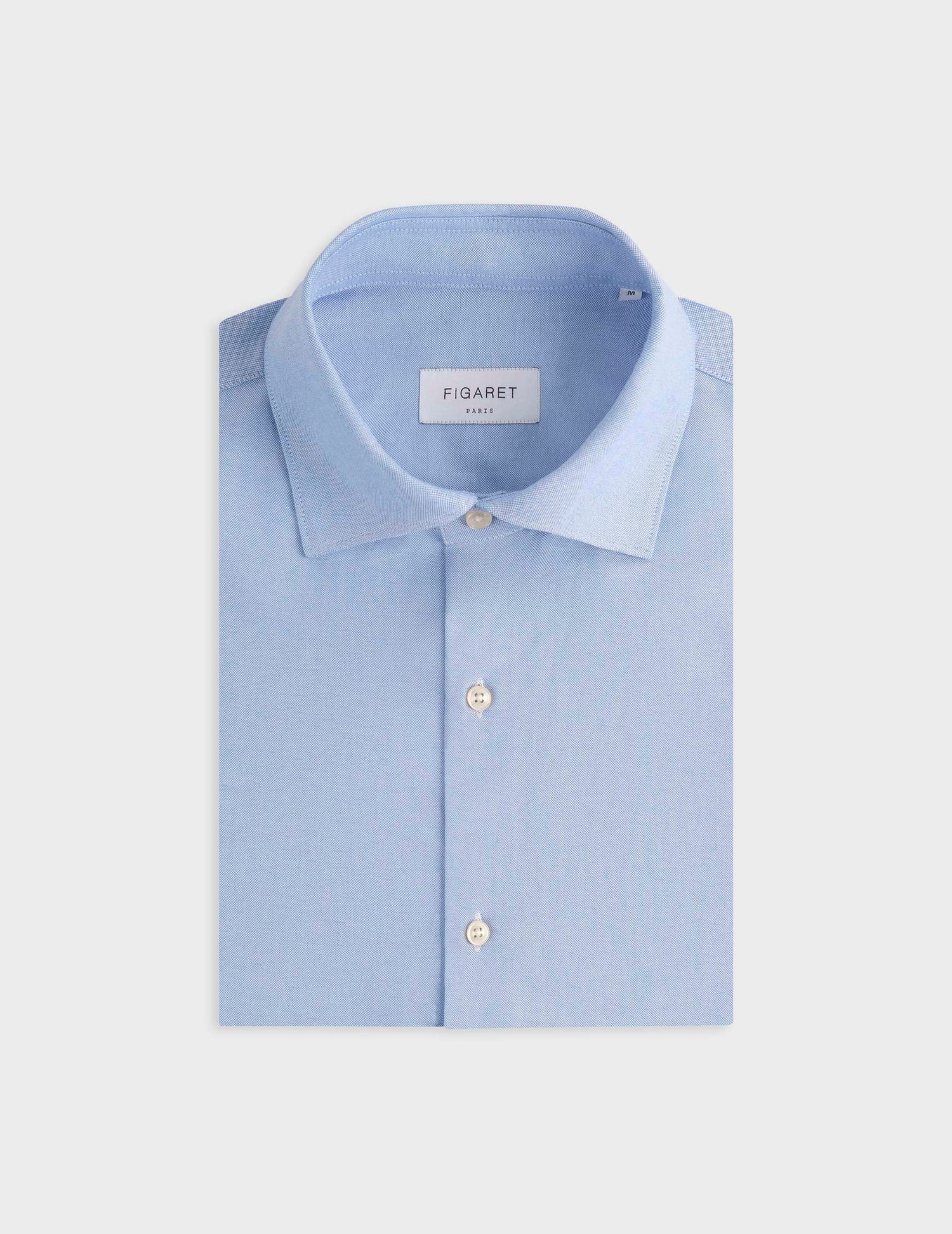 Notre chemise signature à col droit ouvert, déclinée dans plusieurs coloris et matières.