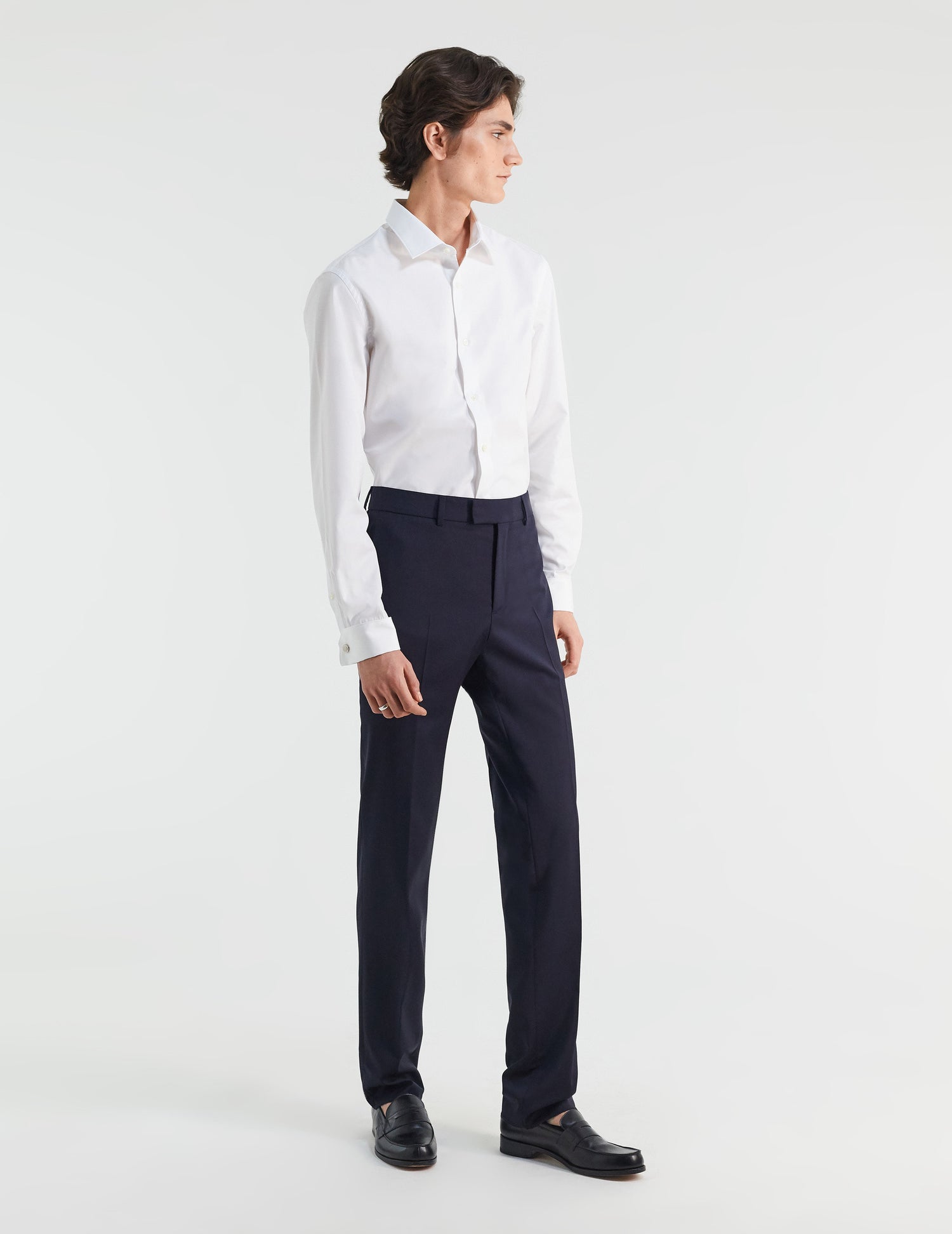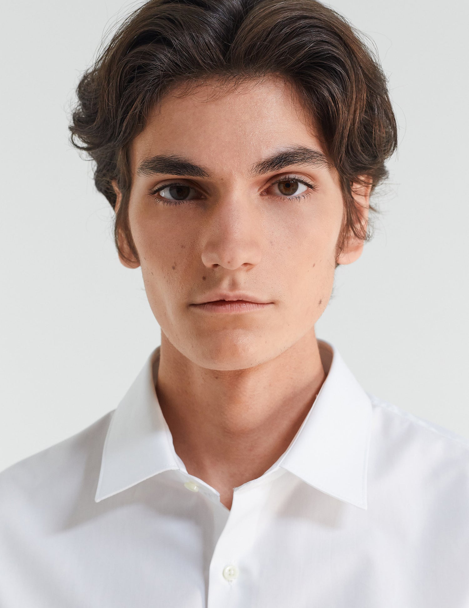Our signature shirt with an open straight collar, available in various colors and fabrics.