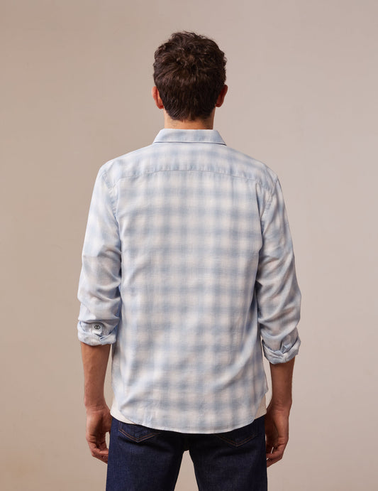 Our signature shirt with an open straight collar, available in various colors and fabrics.