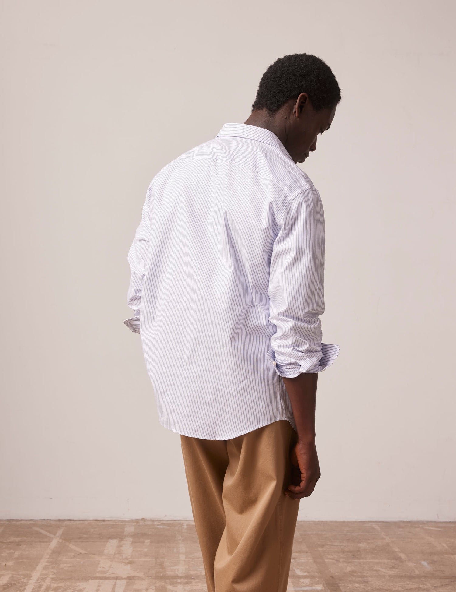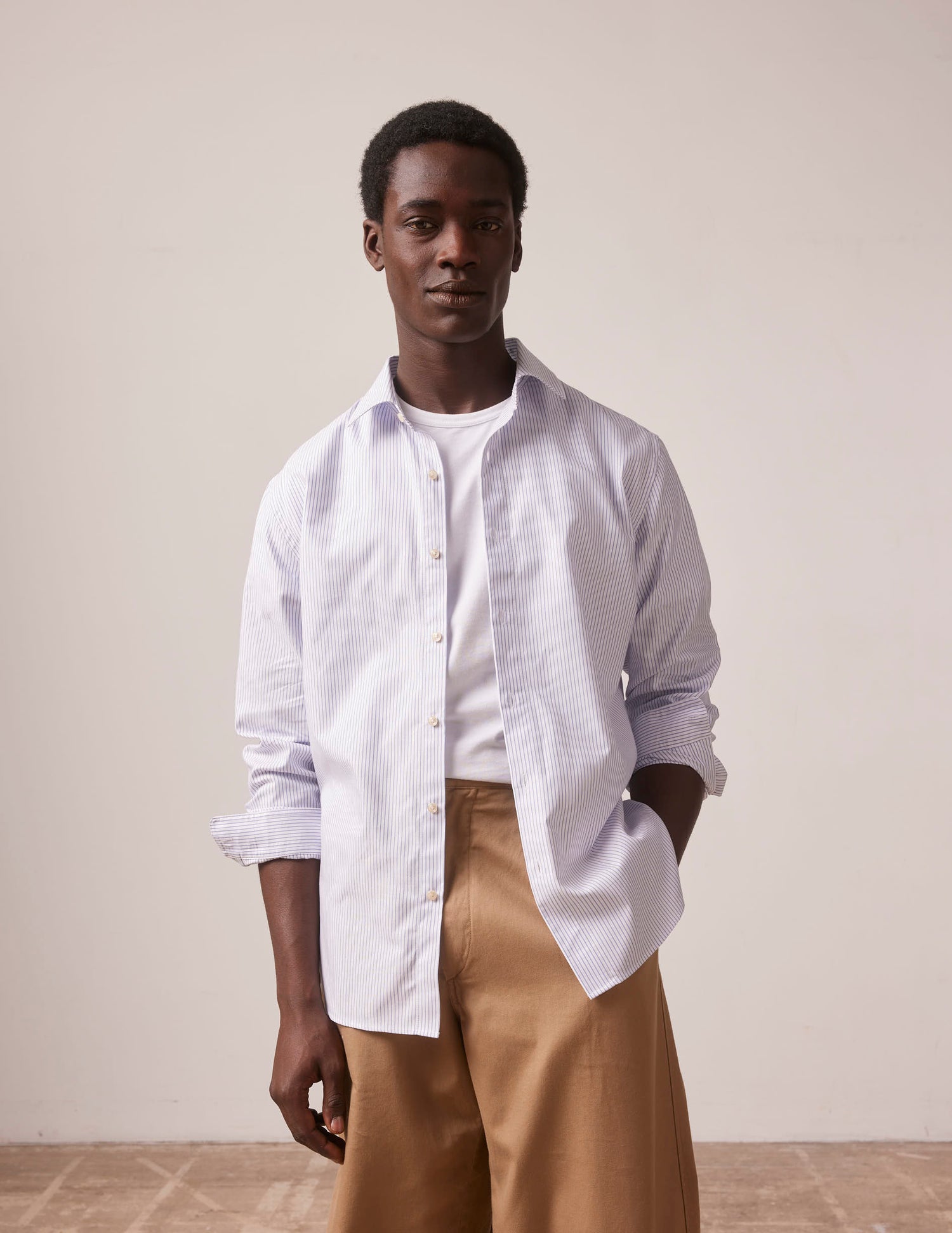 Our signature shirt with an open straight collar, available in various colors and fabrics.
