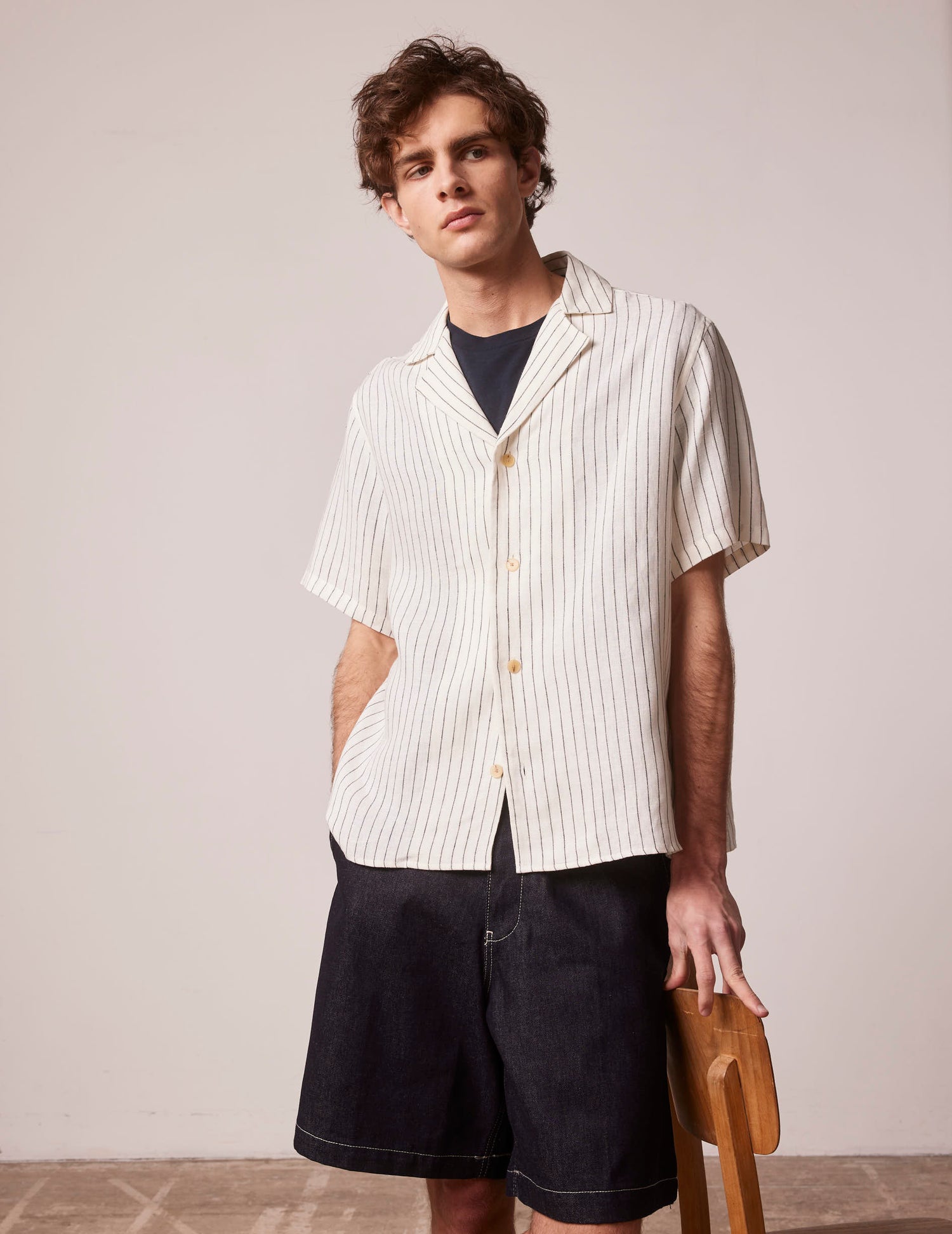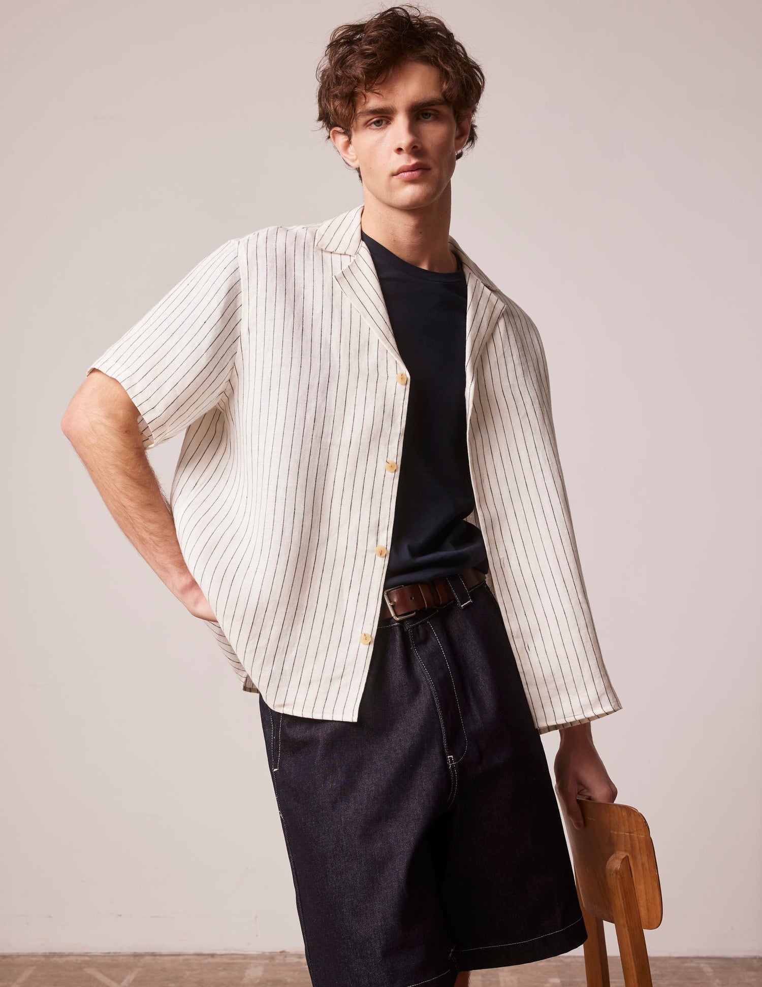Our signature shirt with an open straight collar, available in various colors and fabrics.