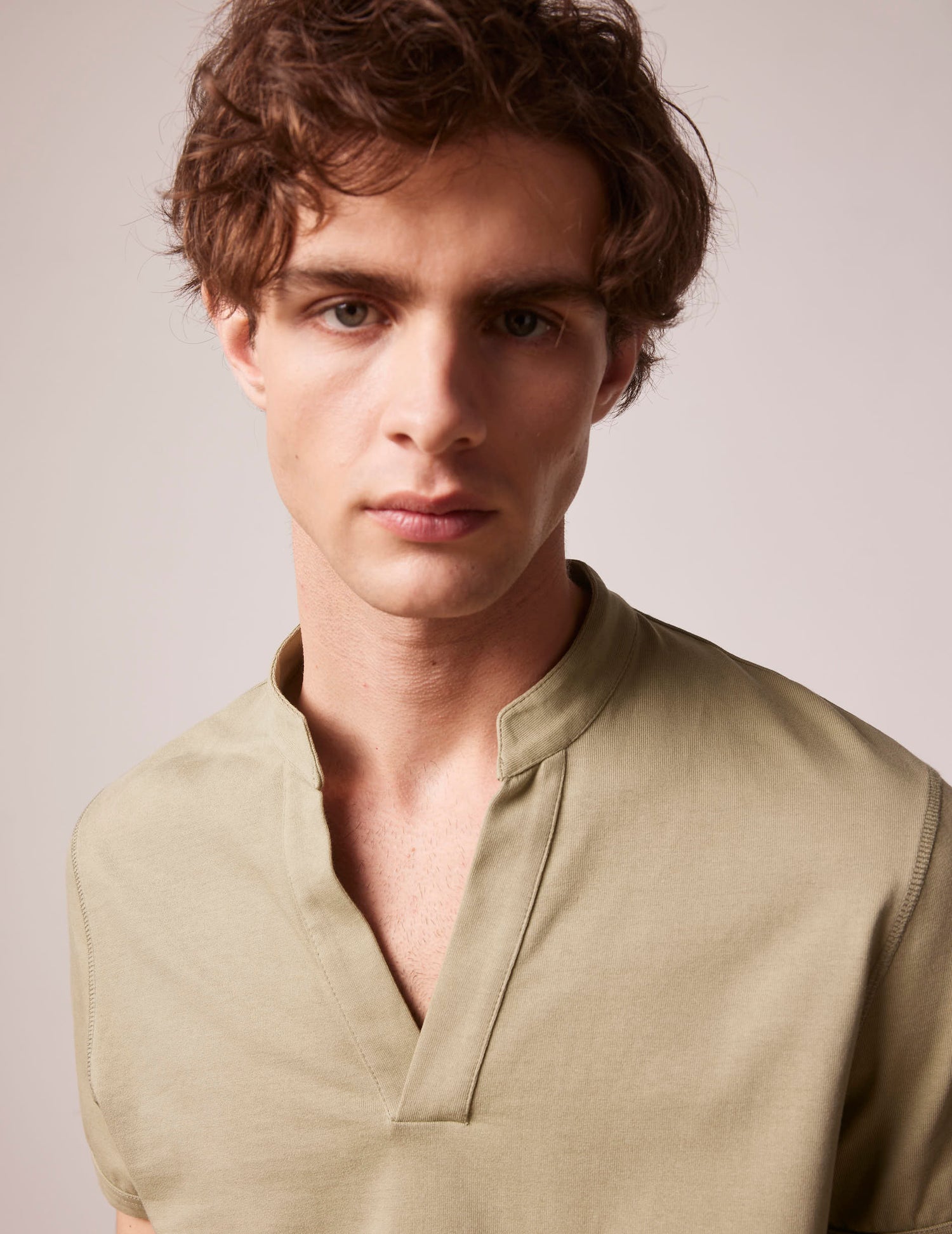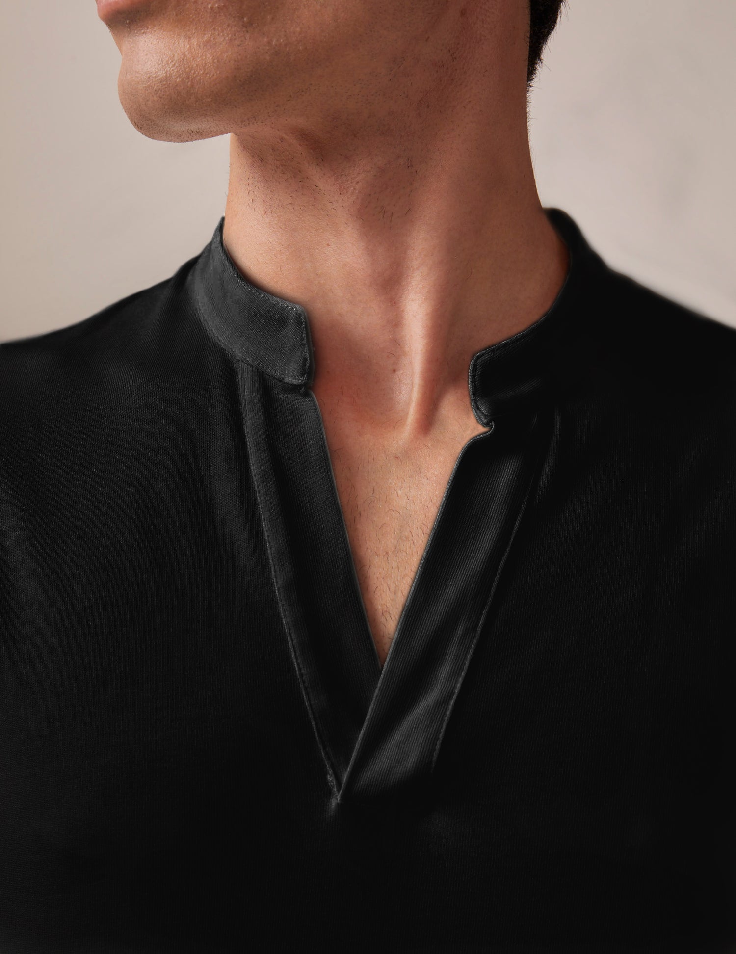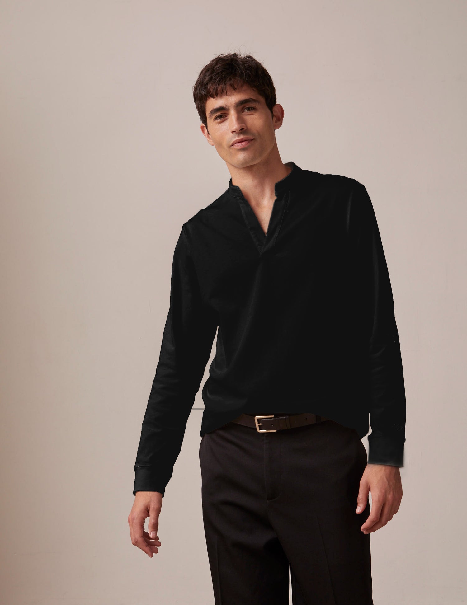 Our signature shirt with an open straight collar, available in various colors and fabrics.