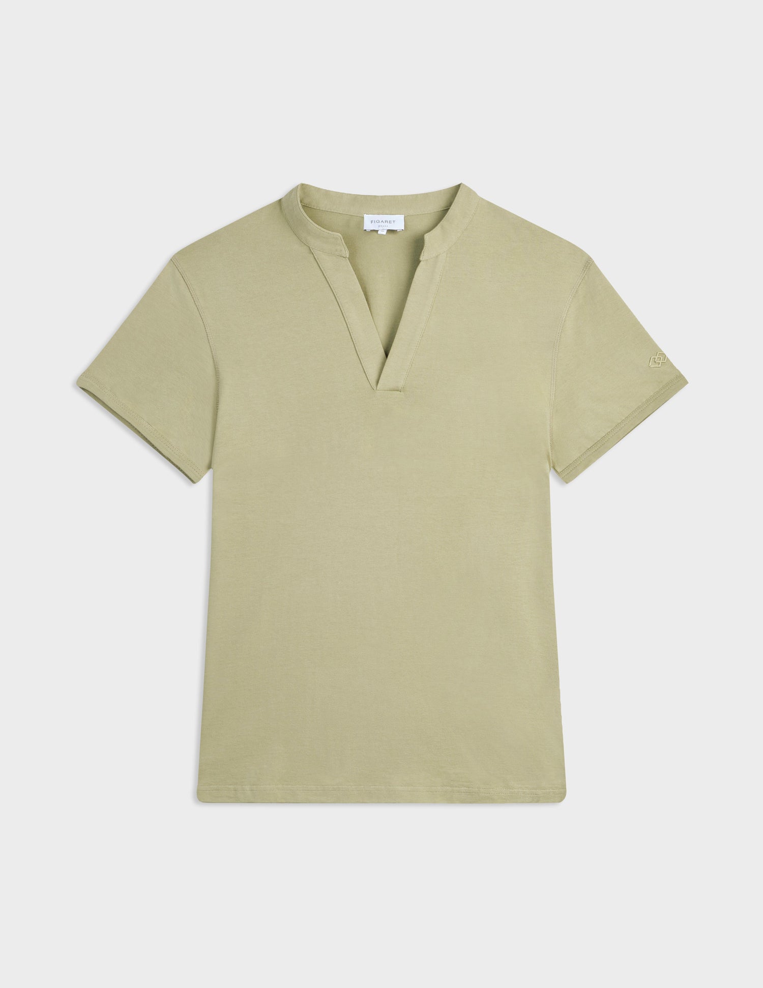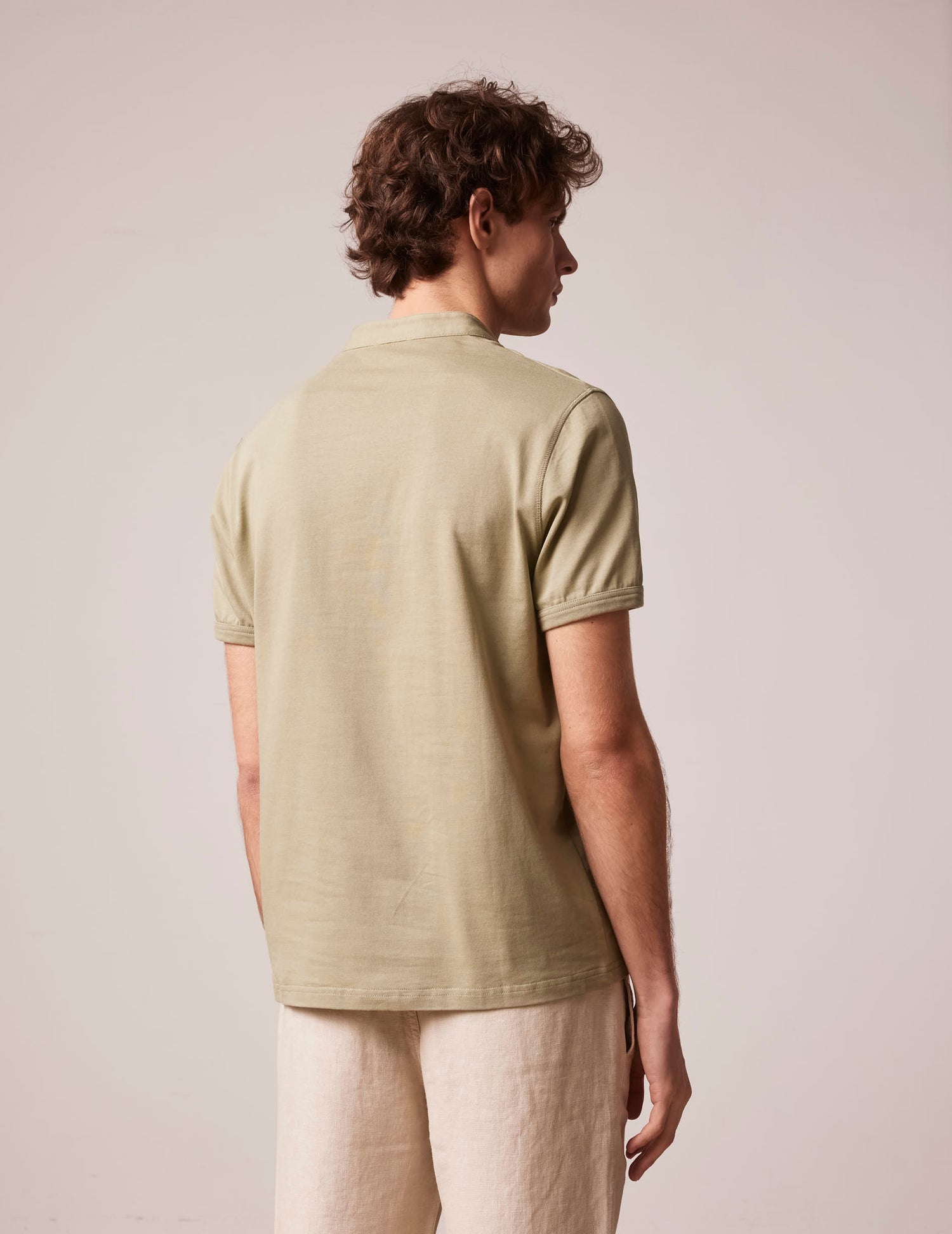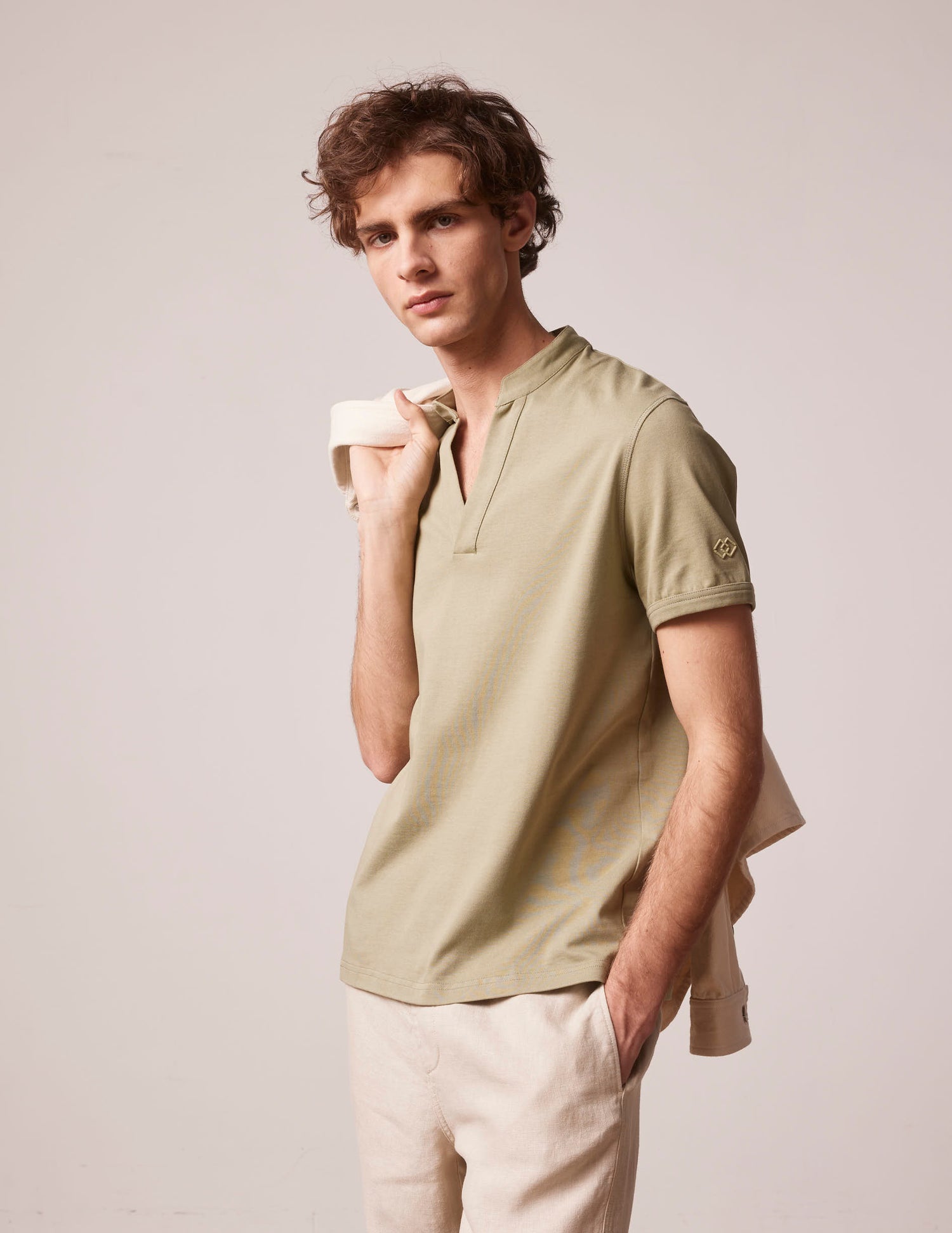 Our signature shirt with an open straight collar, available in various colors and fabrics.