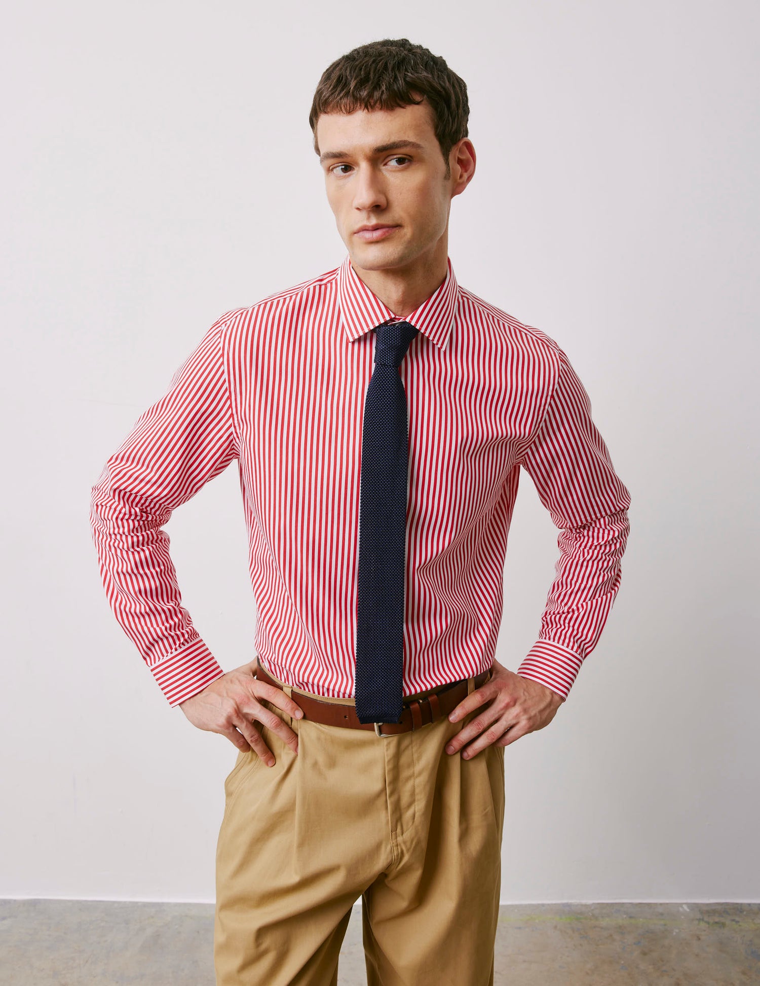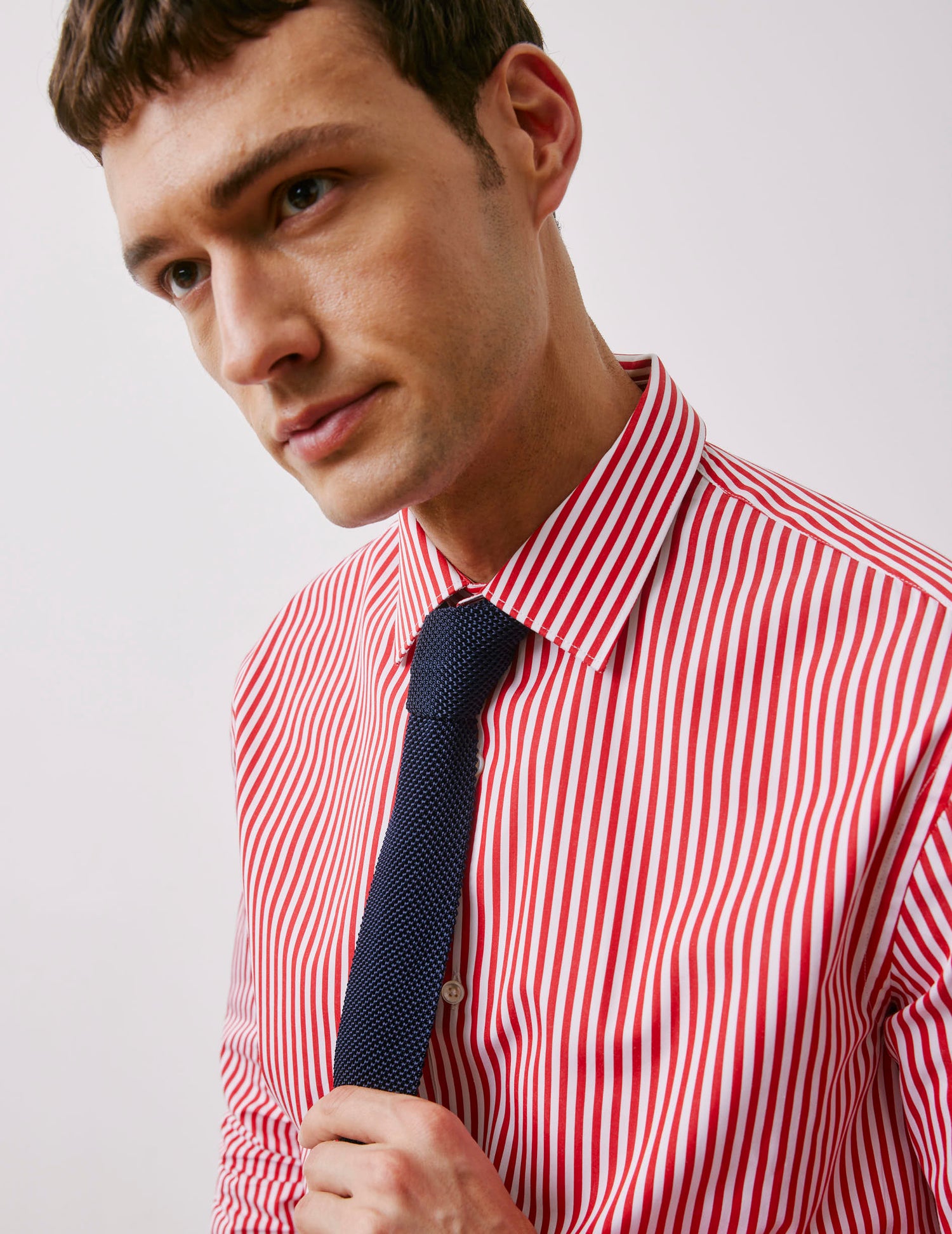 A well-chosen tie should harmoniously complement a man's outfit. For a sober look, plain ties in neutral tones are ideal. For a more daring look, patterned or brightly colored ties can add a touch of personality. Whether it's for weddings, business events or informal outings, matching your tie to your shirt and jacket is essential for an elegant and balanced result.