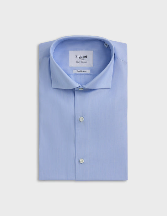 Our signature shirt with an open straight collar, available in various colors and fabrics.
