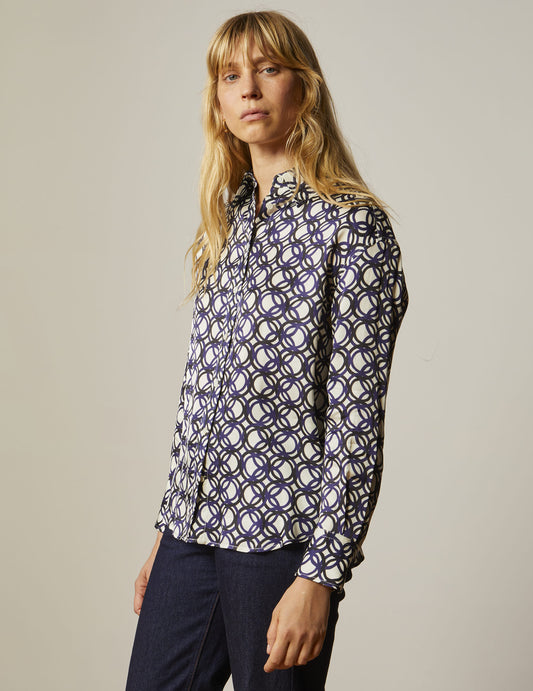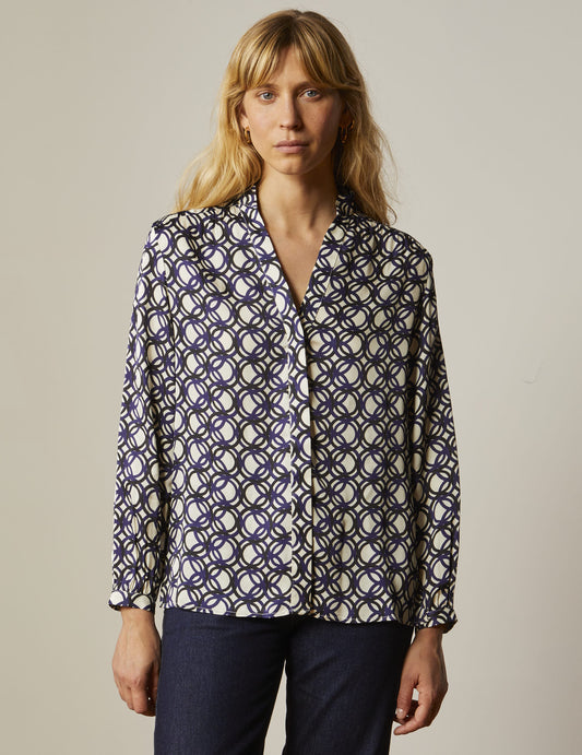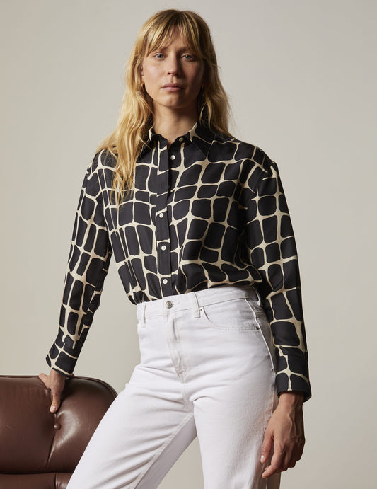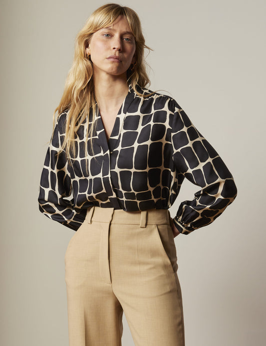 - Add to cart Maryline hidden button placket beige printed shirt 36