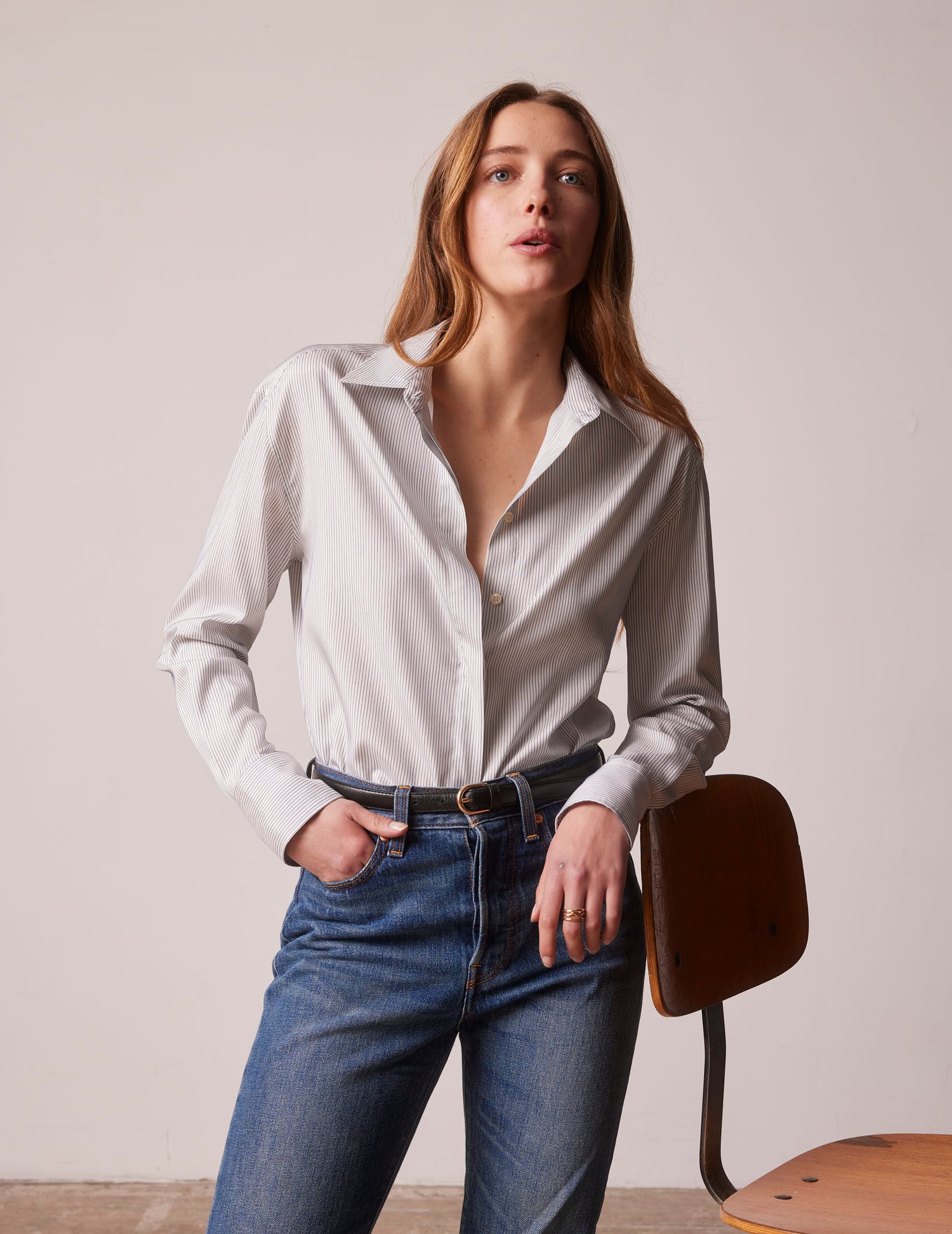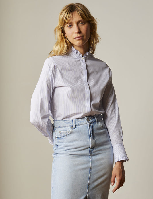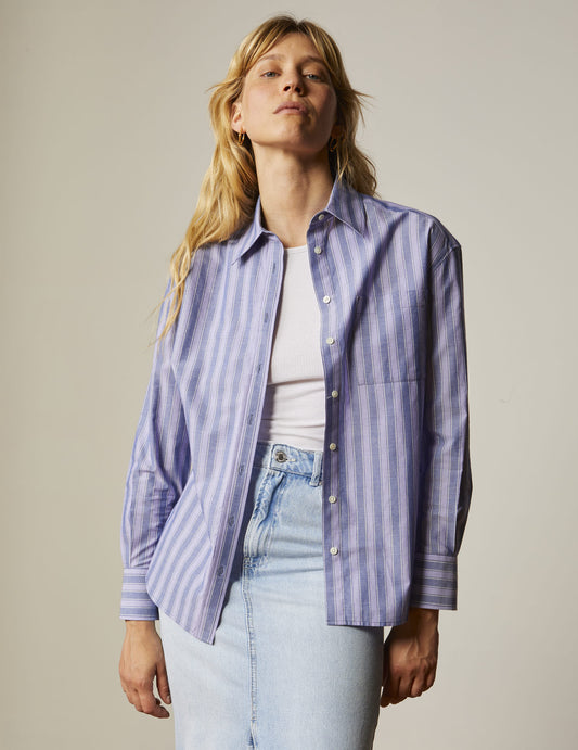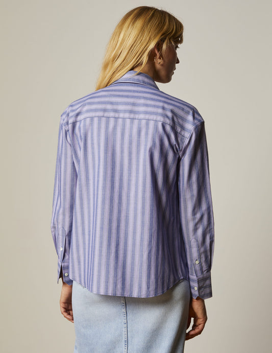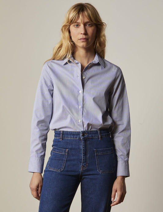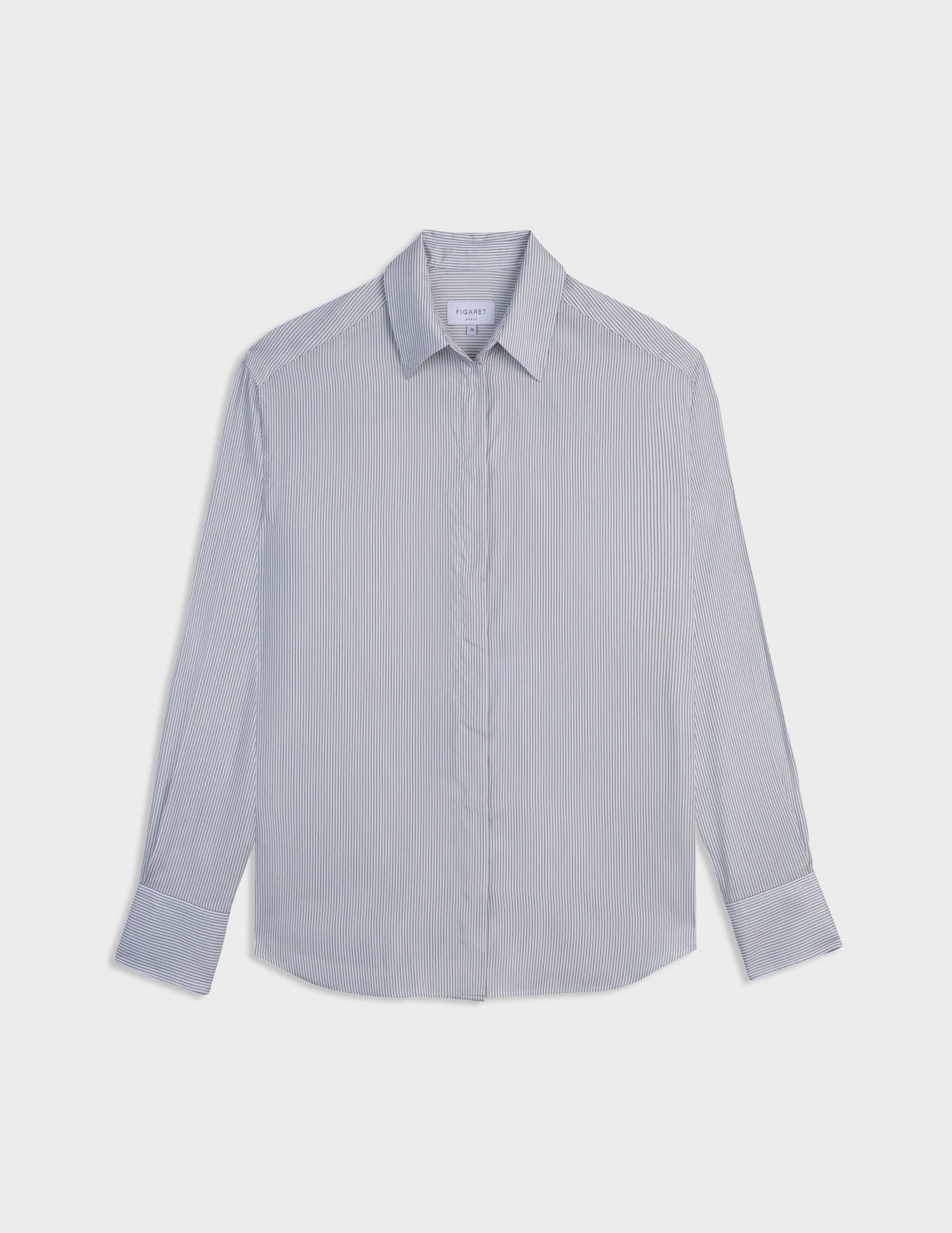 - Add to cart Irisa navy striped hidden button placket shirt 42
