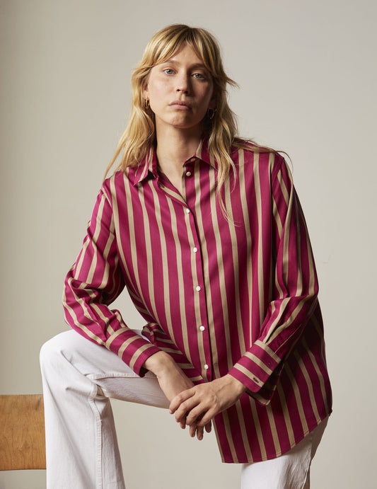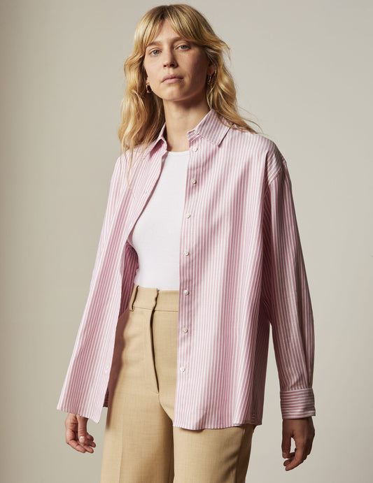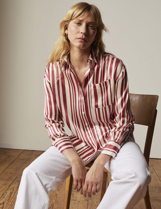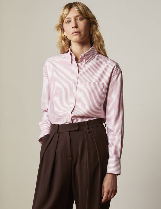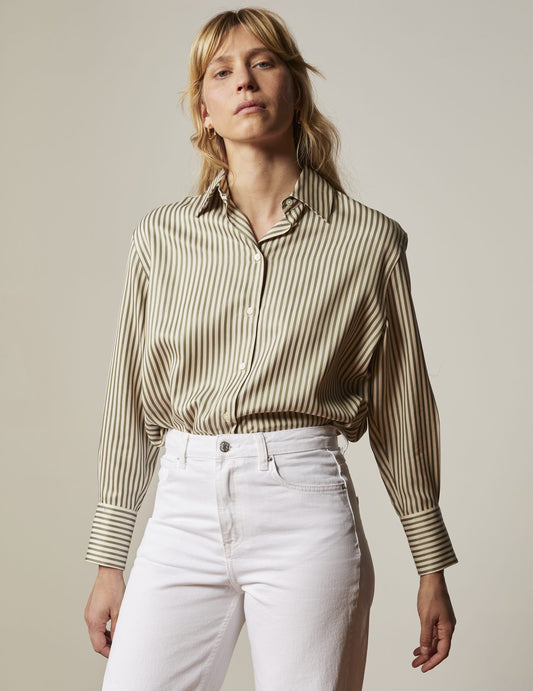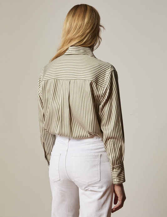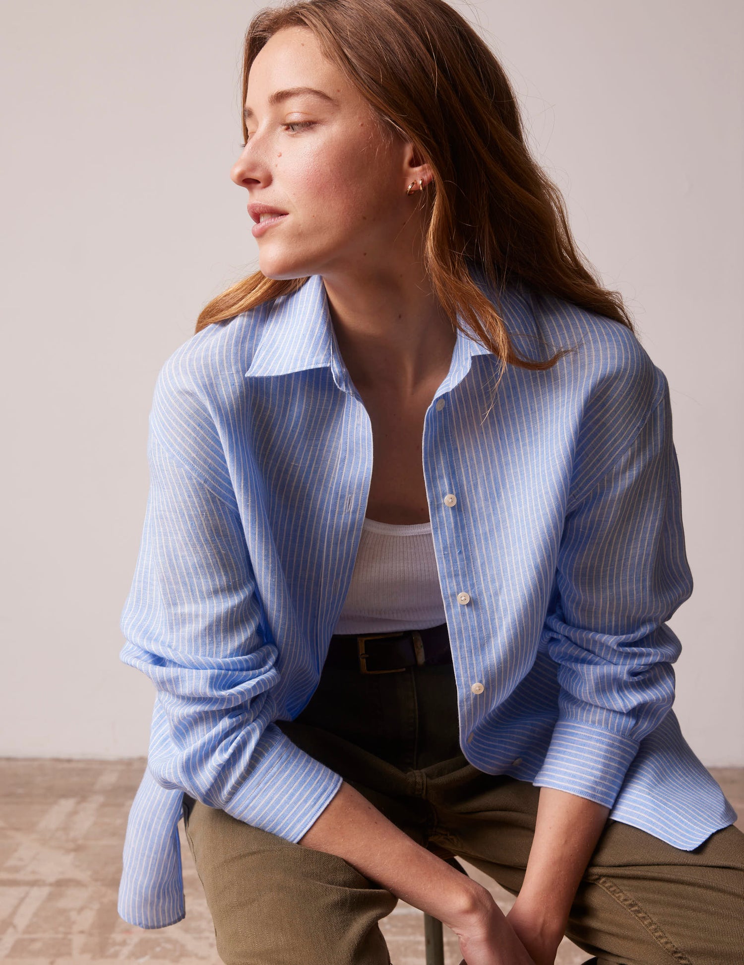 - Add to cart Irisa navy striped hidden button placket shirt 42