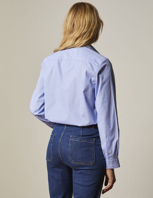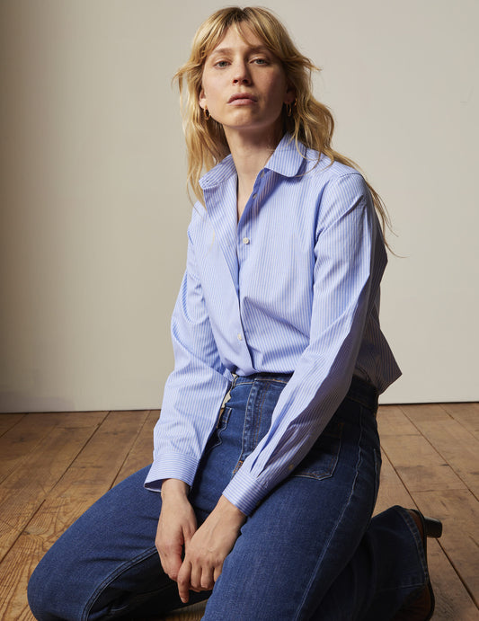- Add to cart Irisa navy striped hidden button placket shirt 36