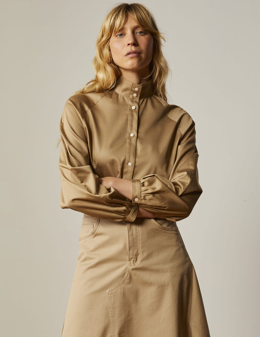 - Add to cart Maryline hidden button placket beige printed shirt 46