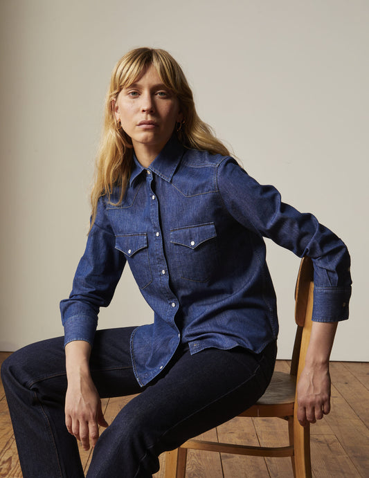- Add to cart Innaée shirt with hidden button placket in navy denim 36