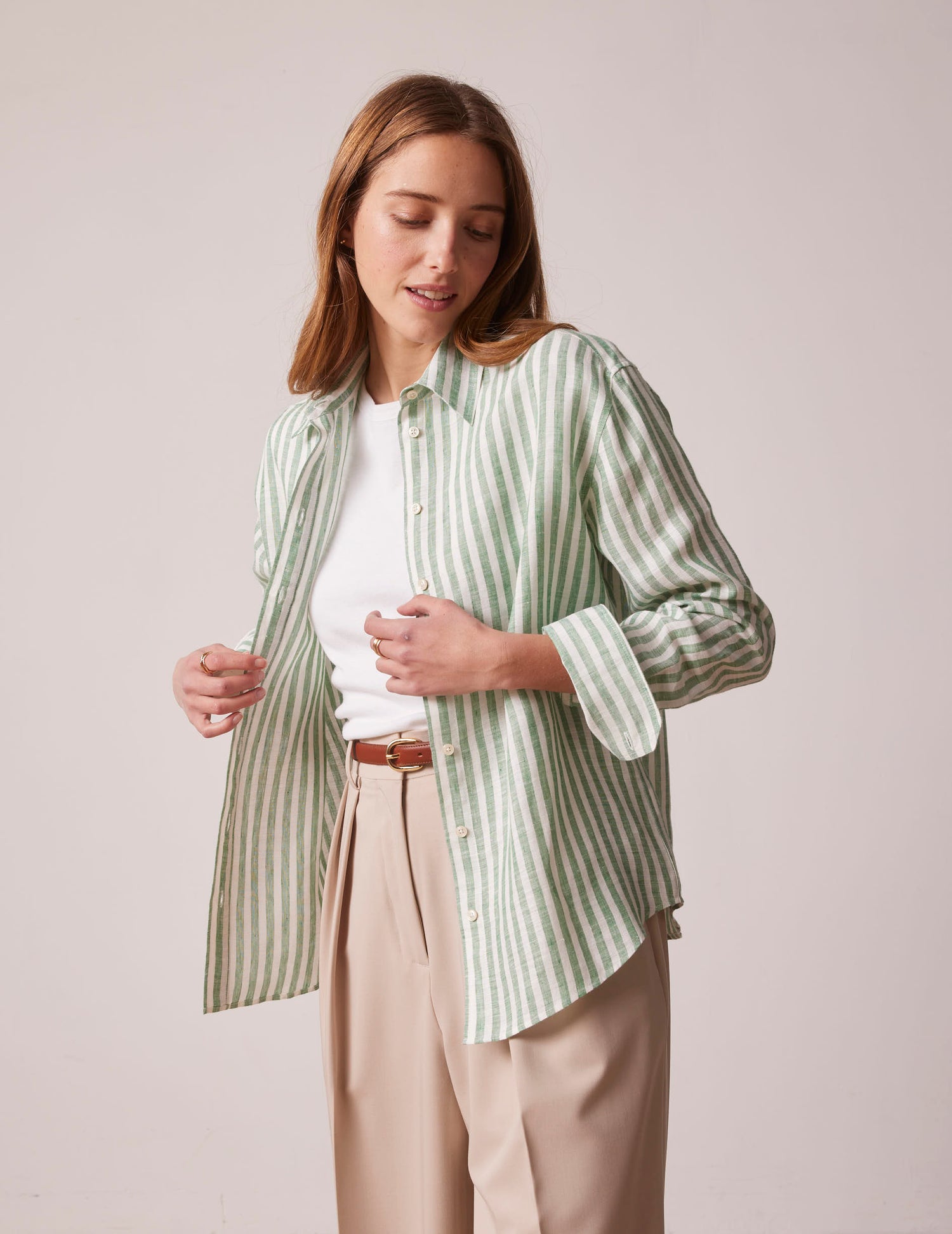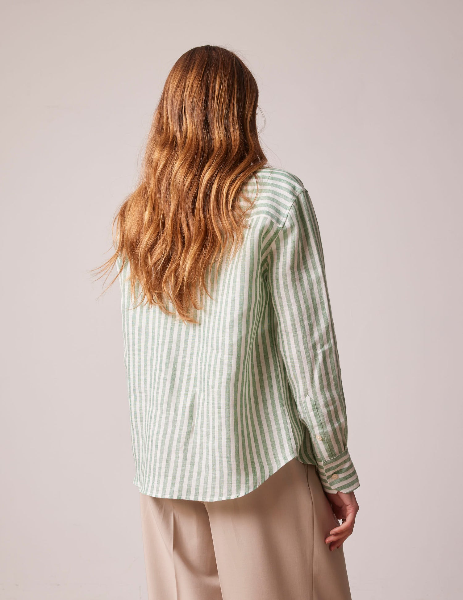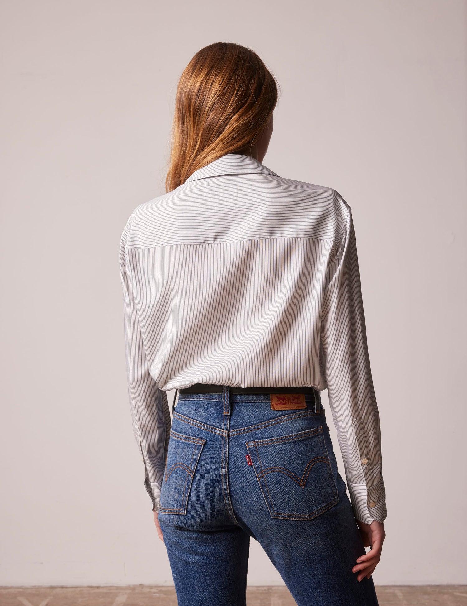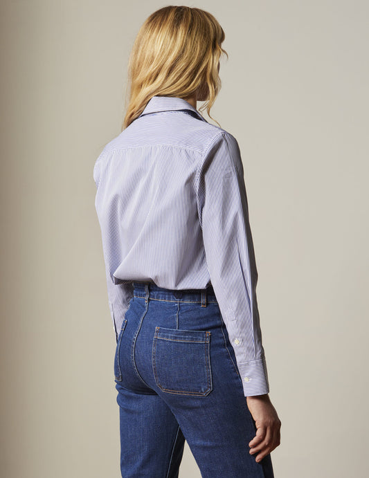 - Add to cart Irisa navy striped hidden button placket shirt 38