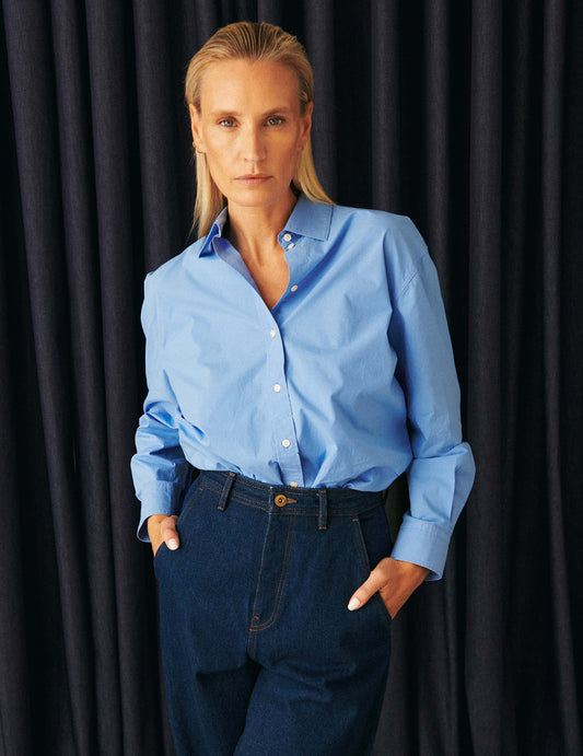 - Add to cart Innaée shirt with hidden button placket in navy denim 34
