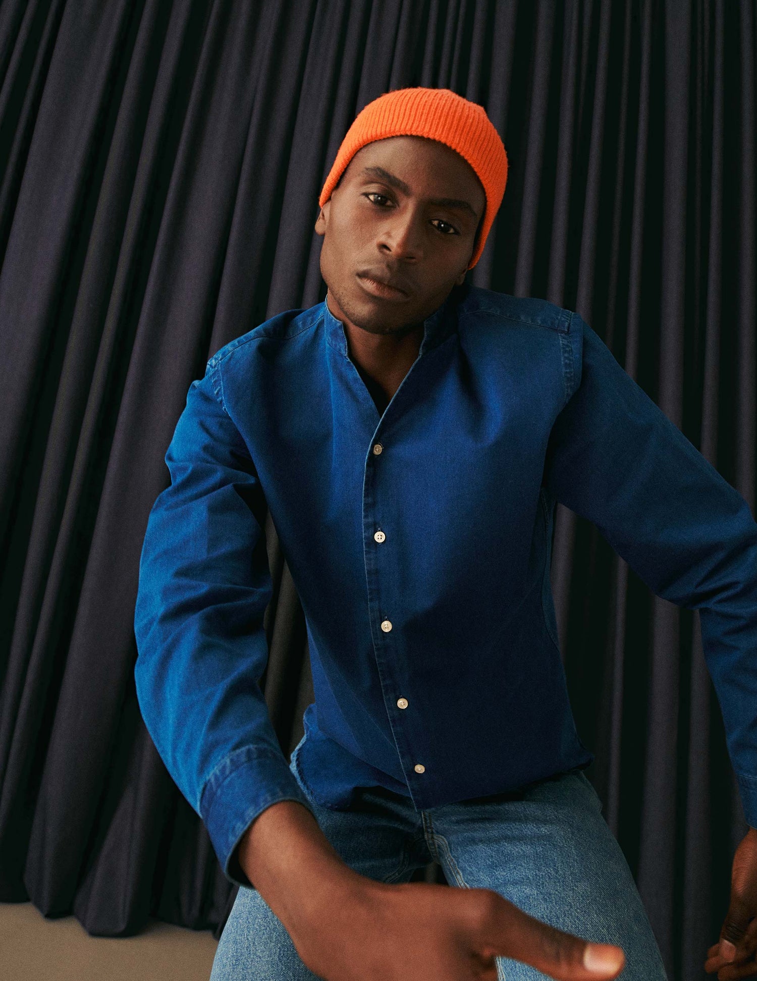 - Add to cart Innaée shirt with hidden button placket in navy denim 42