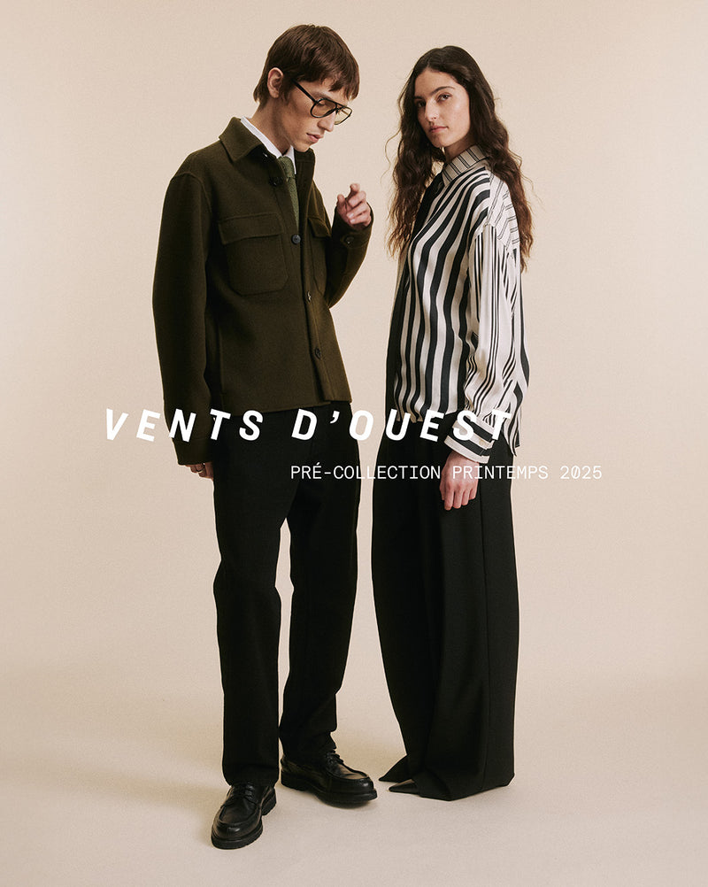 This collection draws its inspiration from the West Winds, which carry softness and lightness. As the new year begins, these gentle breezes introduce styles perfect for mid-season: airy-cut shirts, natural tones, and ready-to-wear pieces seamlessly come together to craft refined silhouettes.