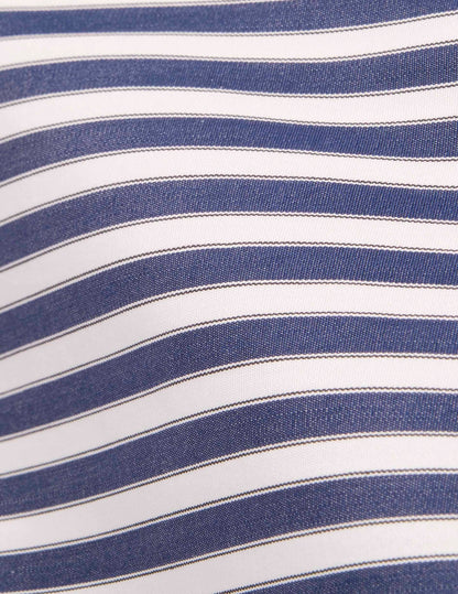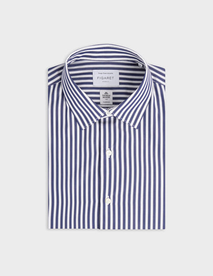 Navy striped semi-fitted shirt Poplin - Figaret Collar