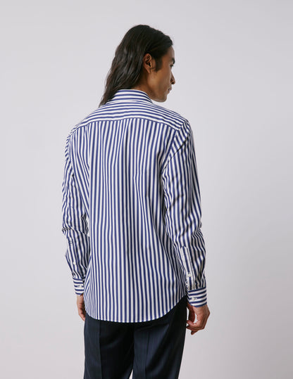 Semi-fitted navy striped shirt Poplin - Majestic Collar