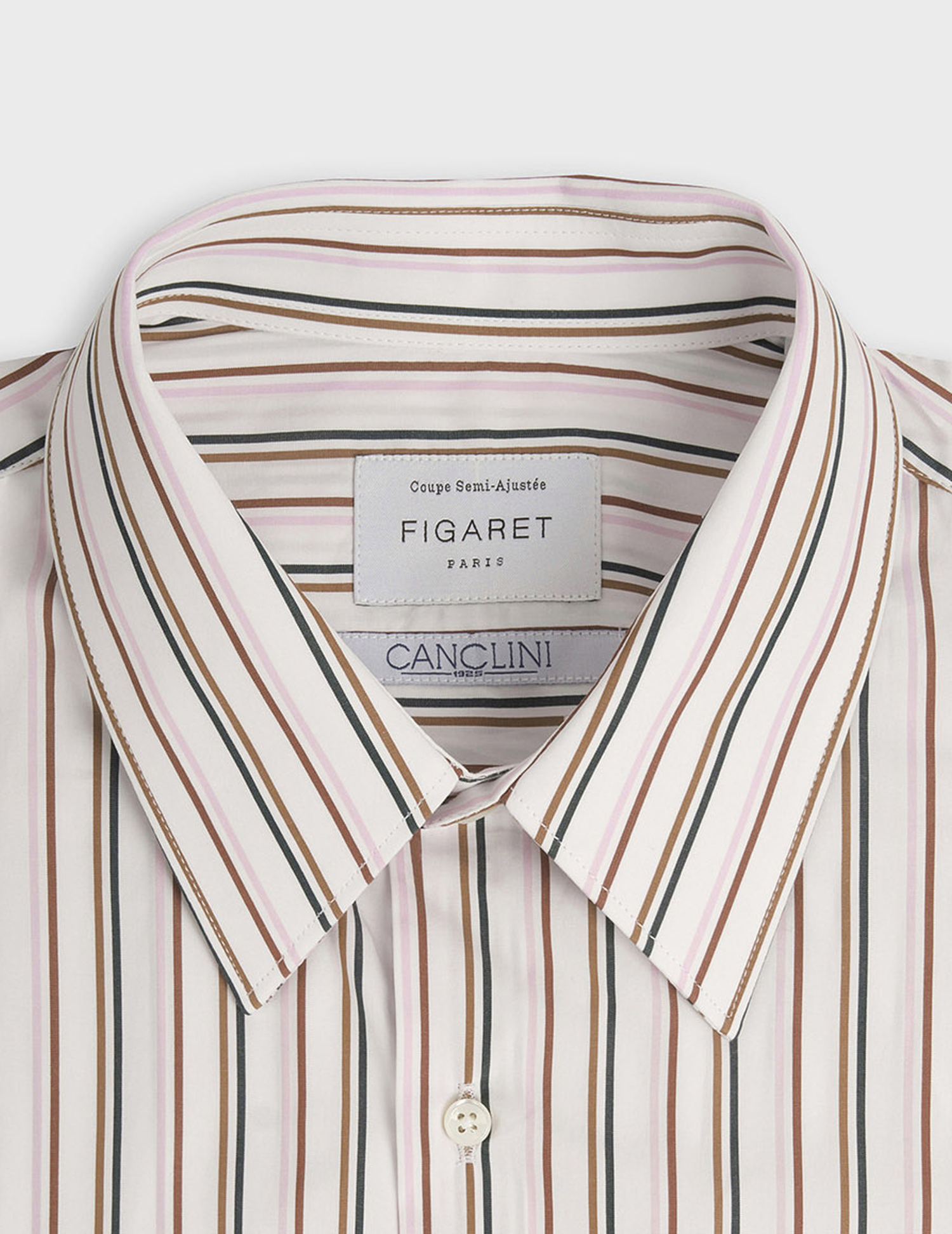Semi-fitted pink striped shirt Poplin - Prodigious Collar