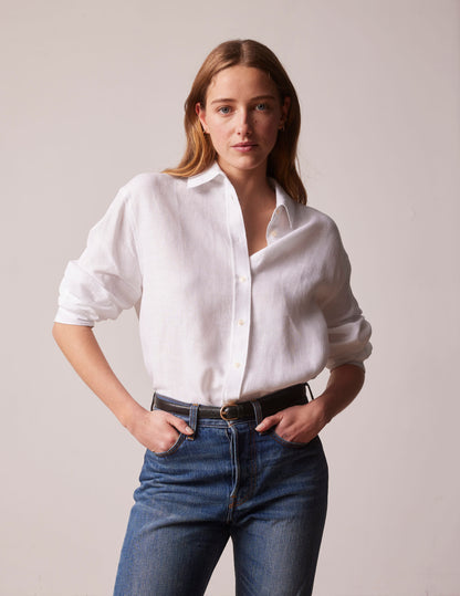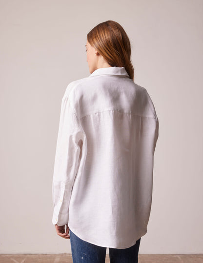 Oversized white linen Delina shirt Linen - Shirt Collar