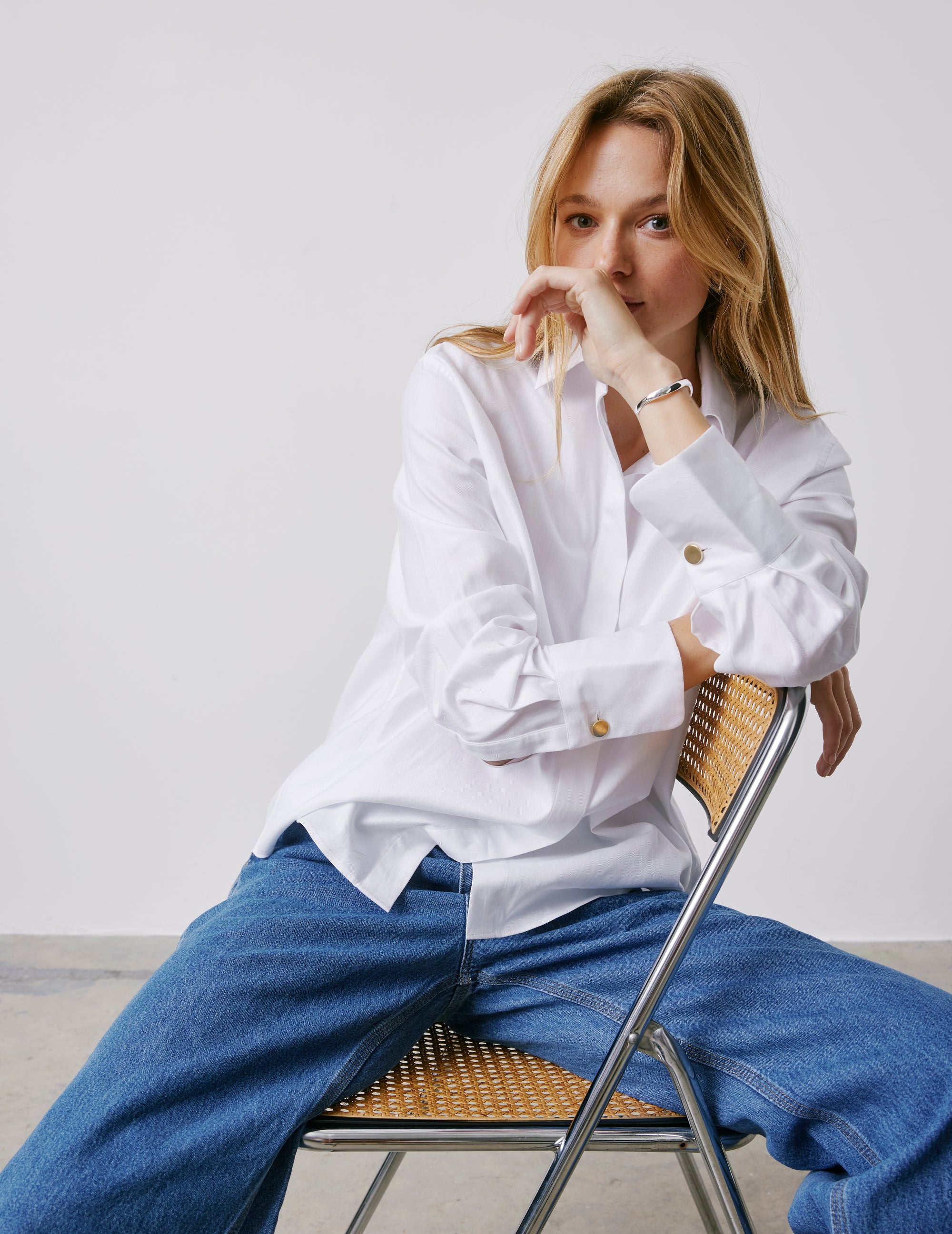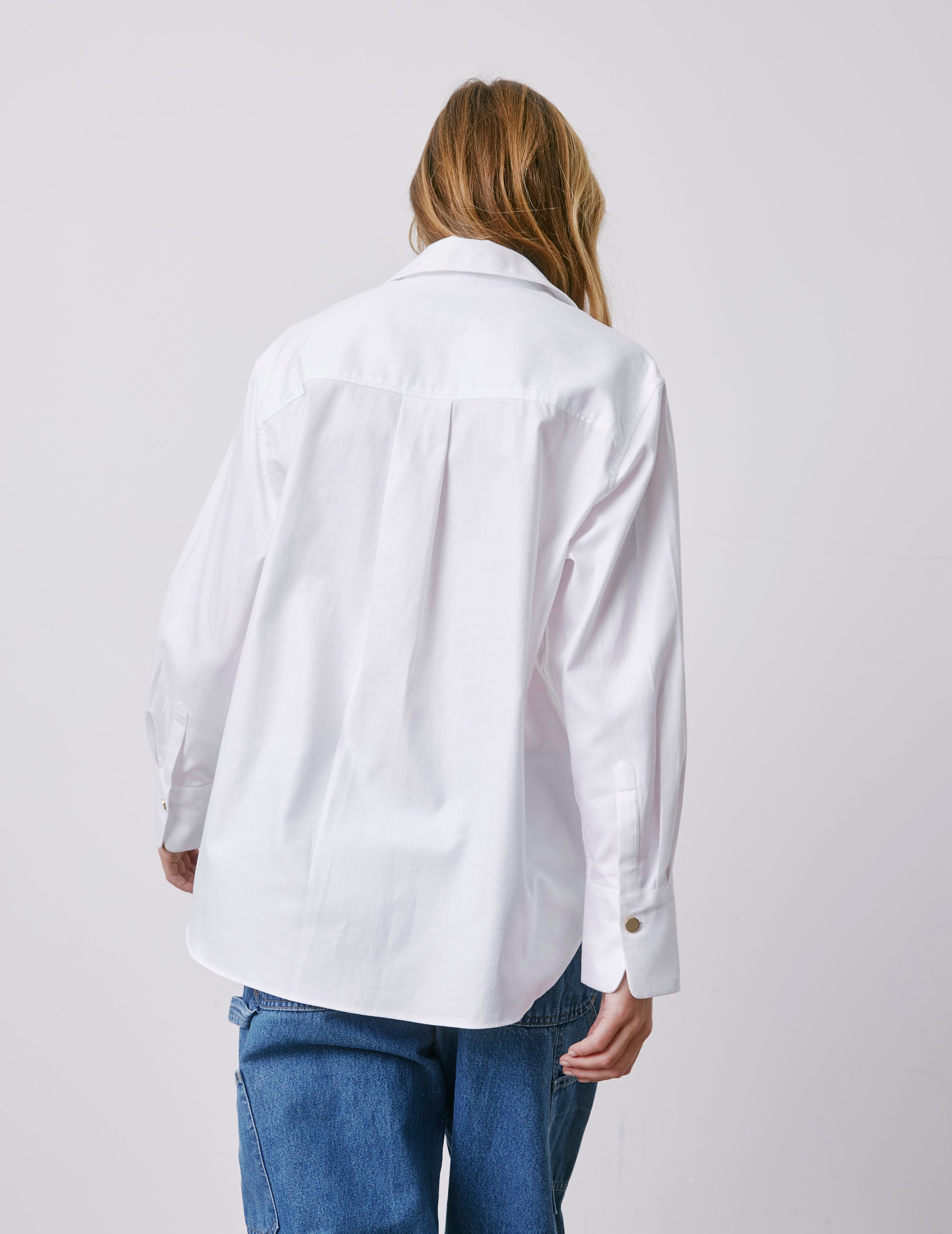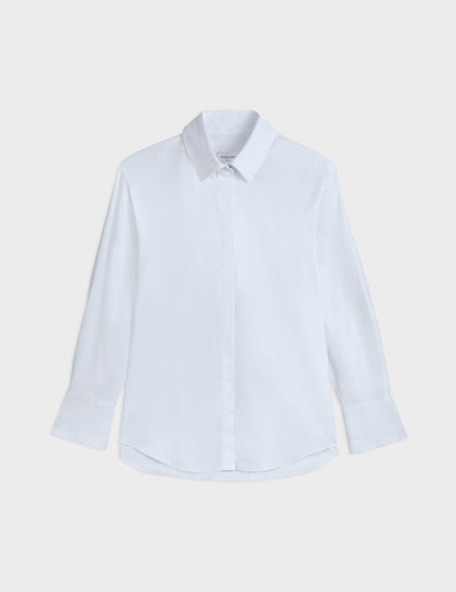 Mathéa white hidden button placket shirt Herringbone - Shirt Collar