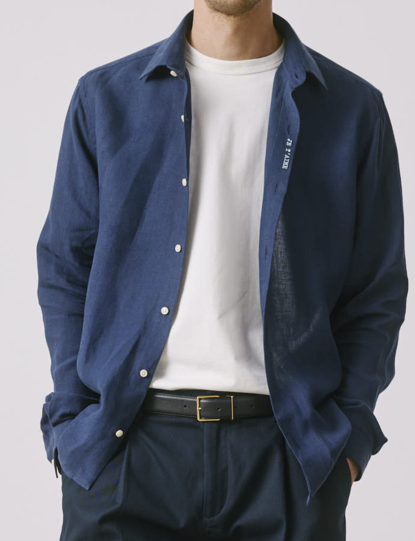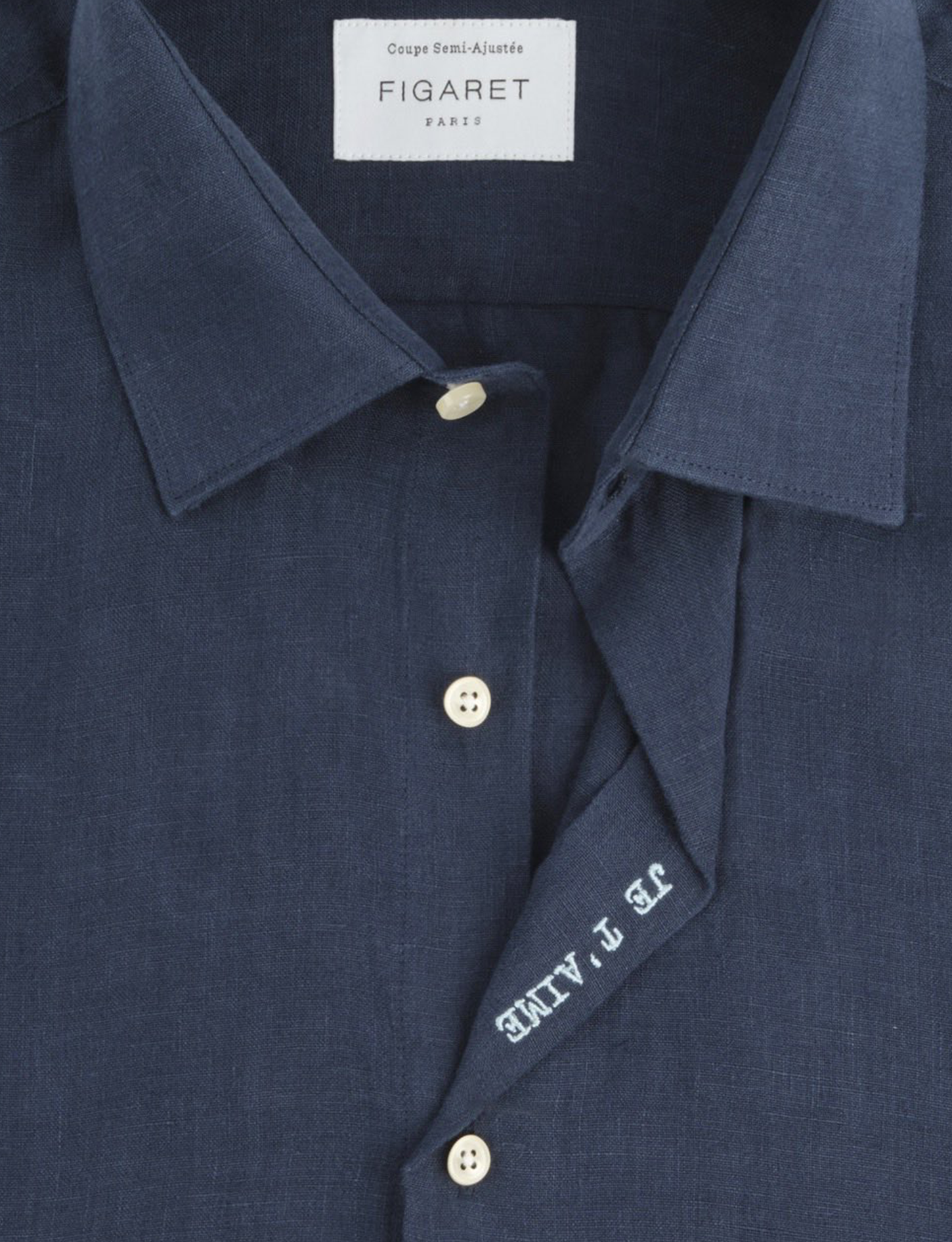 Unisex navy “Je t’aime” shirt Linen - Figaret Collar