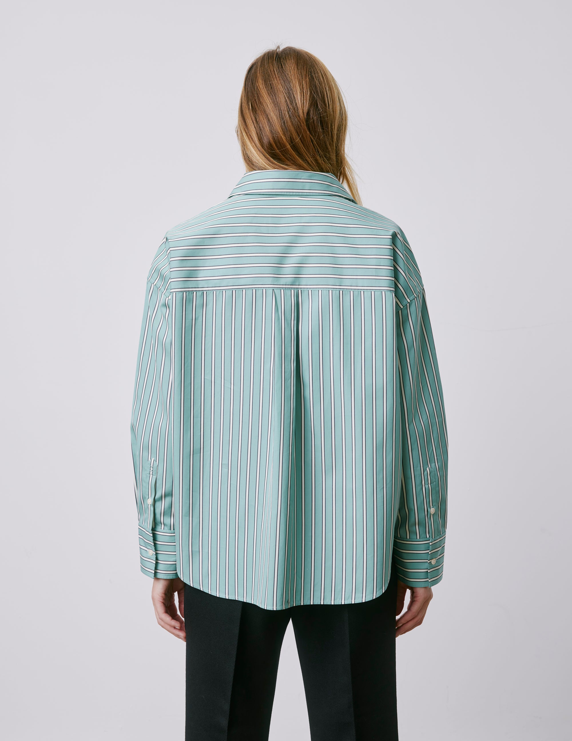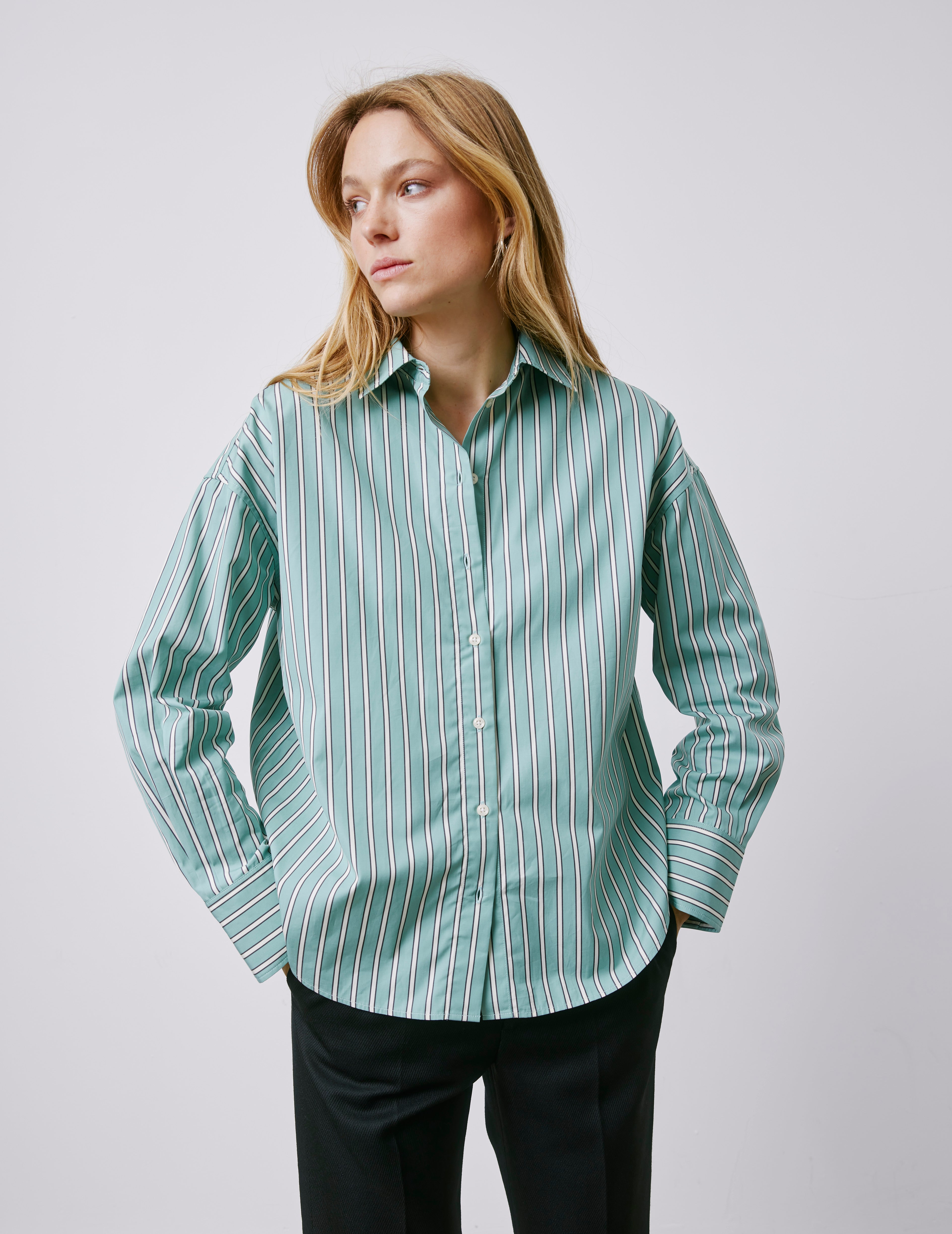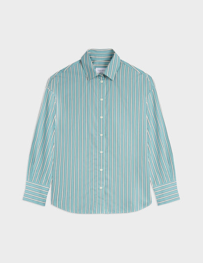 Lizandra sage green striped oversized shirt Poplin - Shirt Collar
