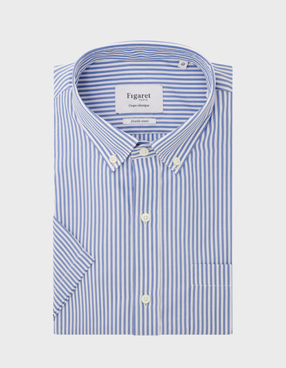 Classic blue striped short-sleeved shirt Poplin - American Collar