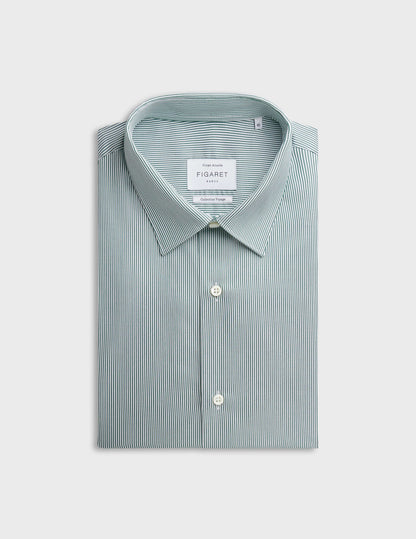 Fitted green striped easy-iron shirt Twill - Figaret Collar - Easy-iron