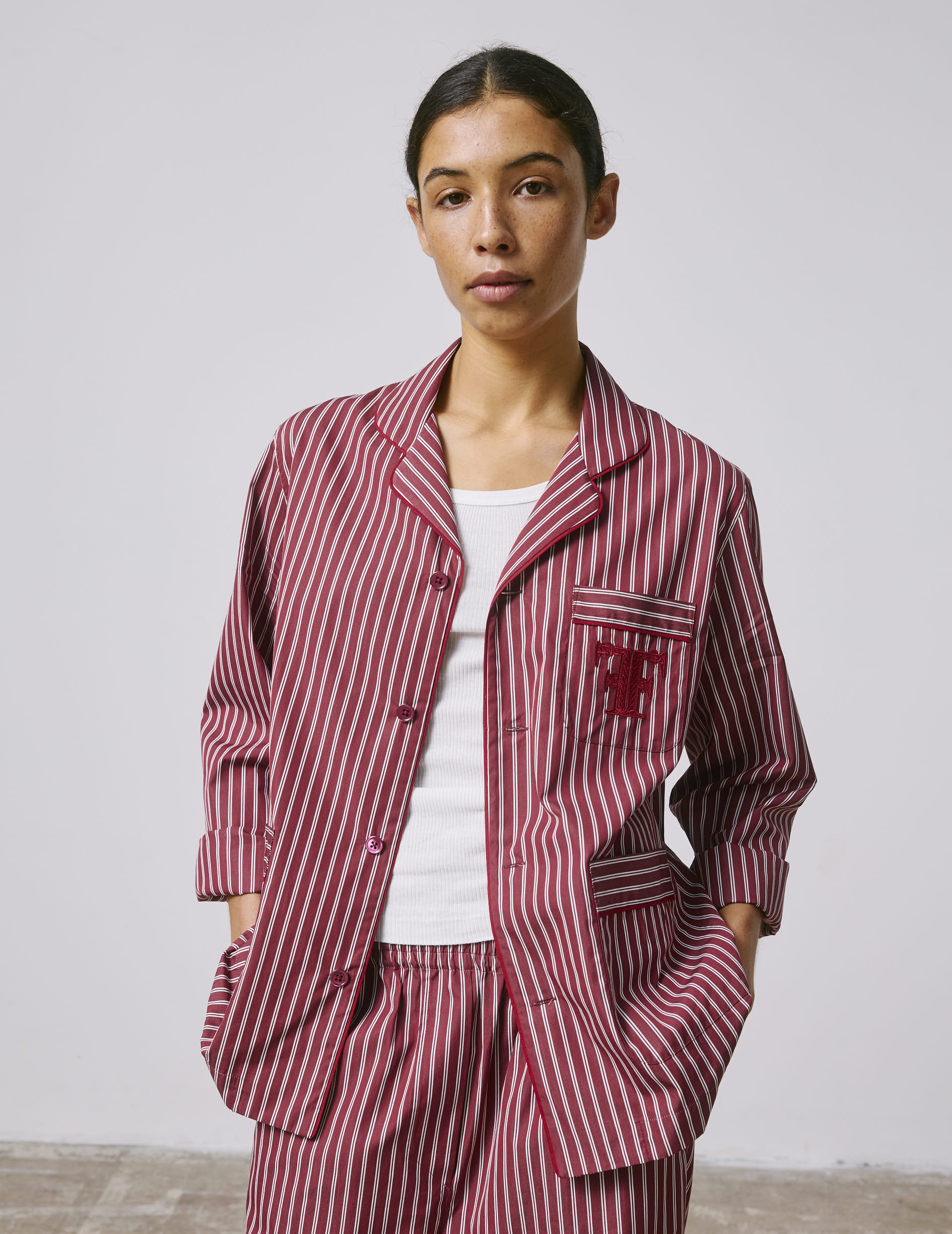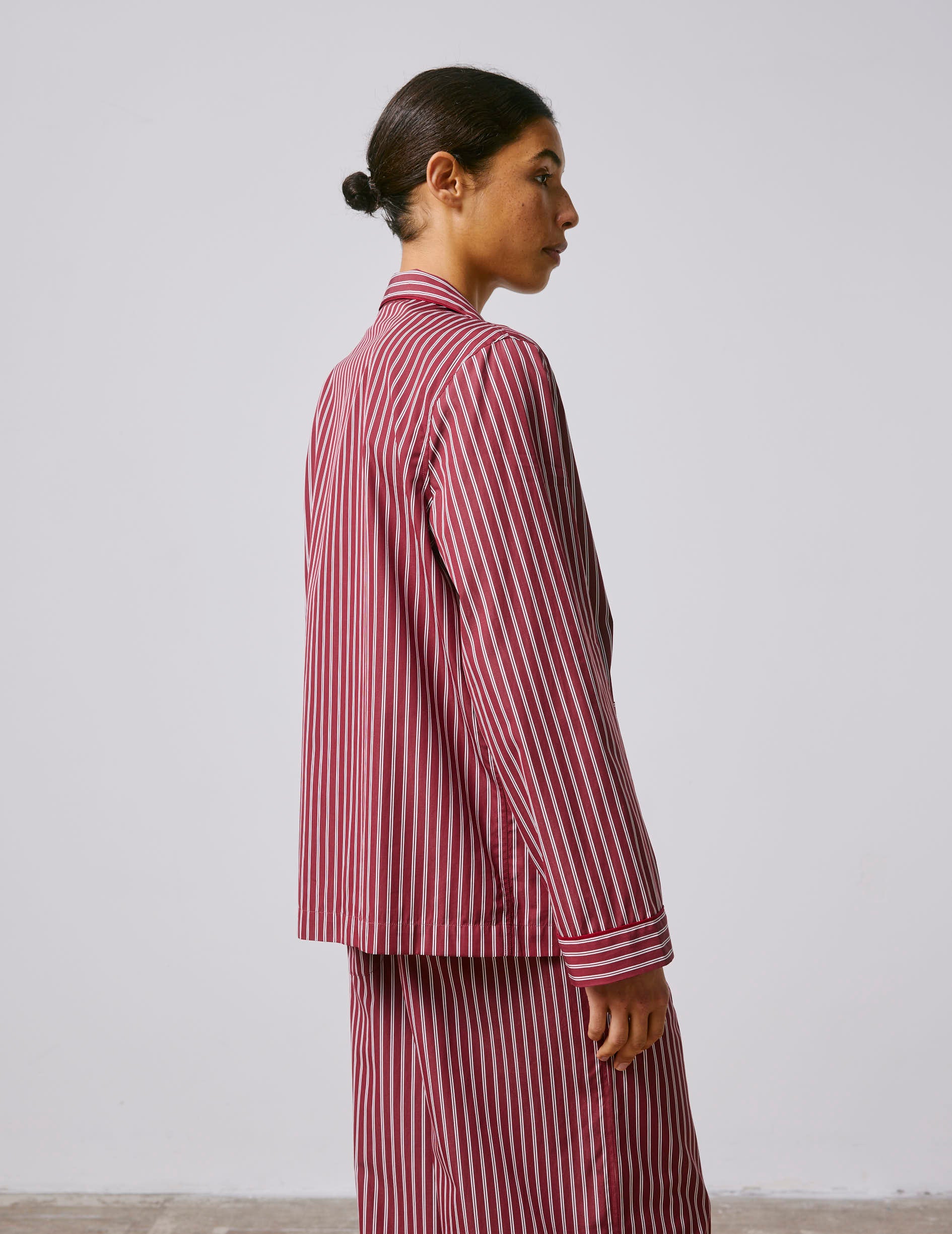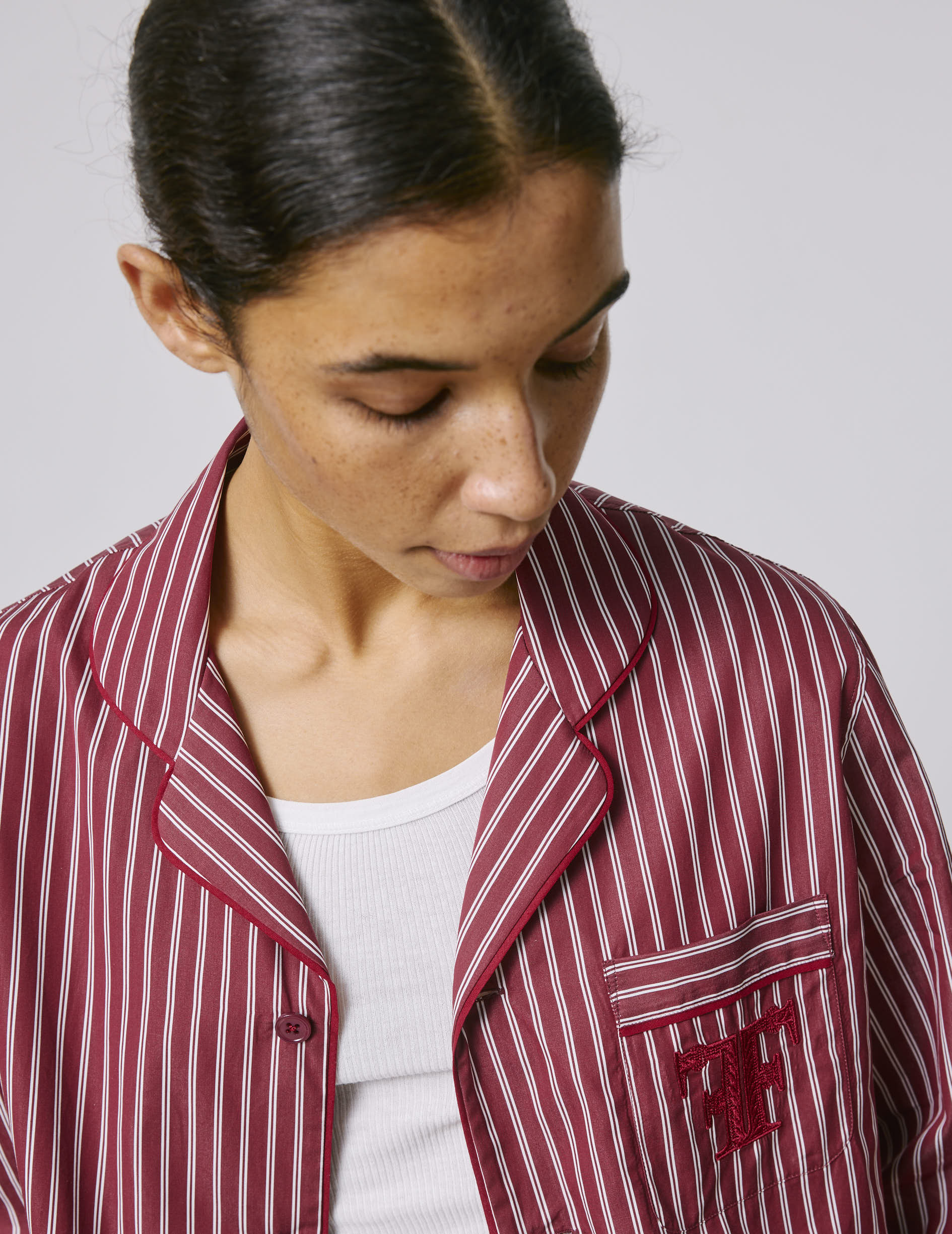 Striped burgundy Nocturne pajama top Poplin - Pyjamas Collar