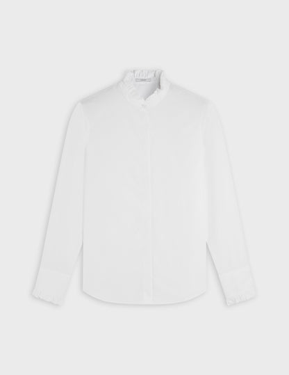 The white poplin Louison shirt has a ruffled Victorian collar for a sophisticated look.