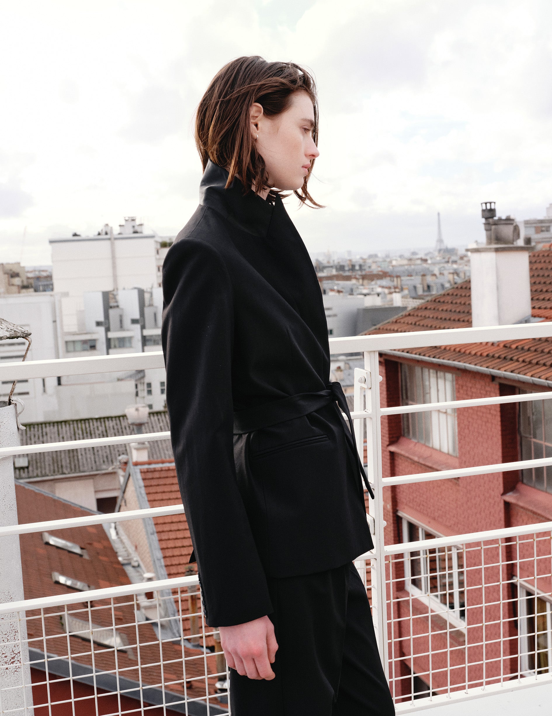The black virgin wool Nelly suit pants pairs with the black virgin wool Nora suit jacket.