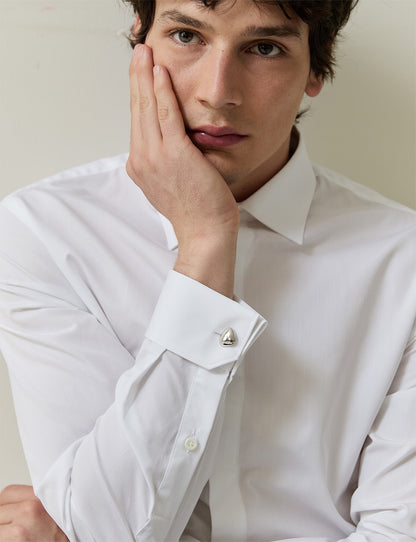 Semi-fitted white hidden buttons placket shirt Poplin - Figaret Collar - French Cuffs