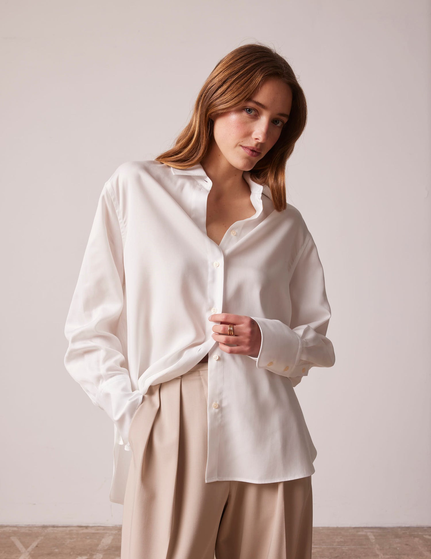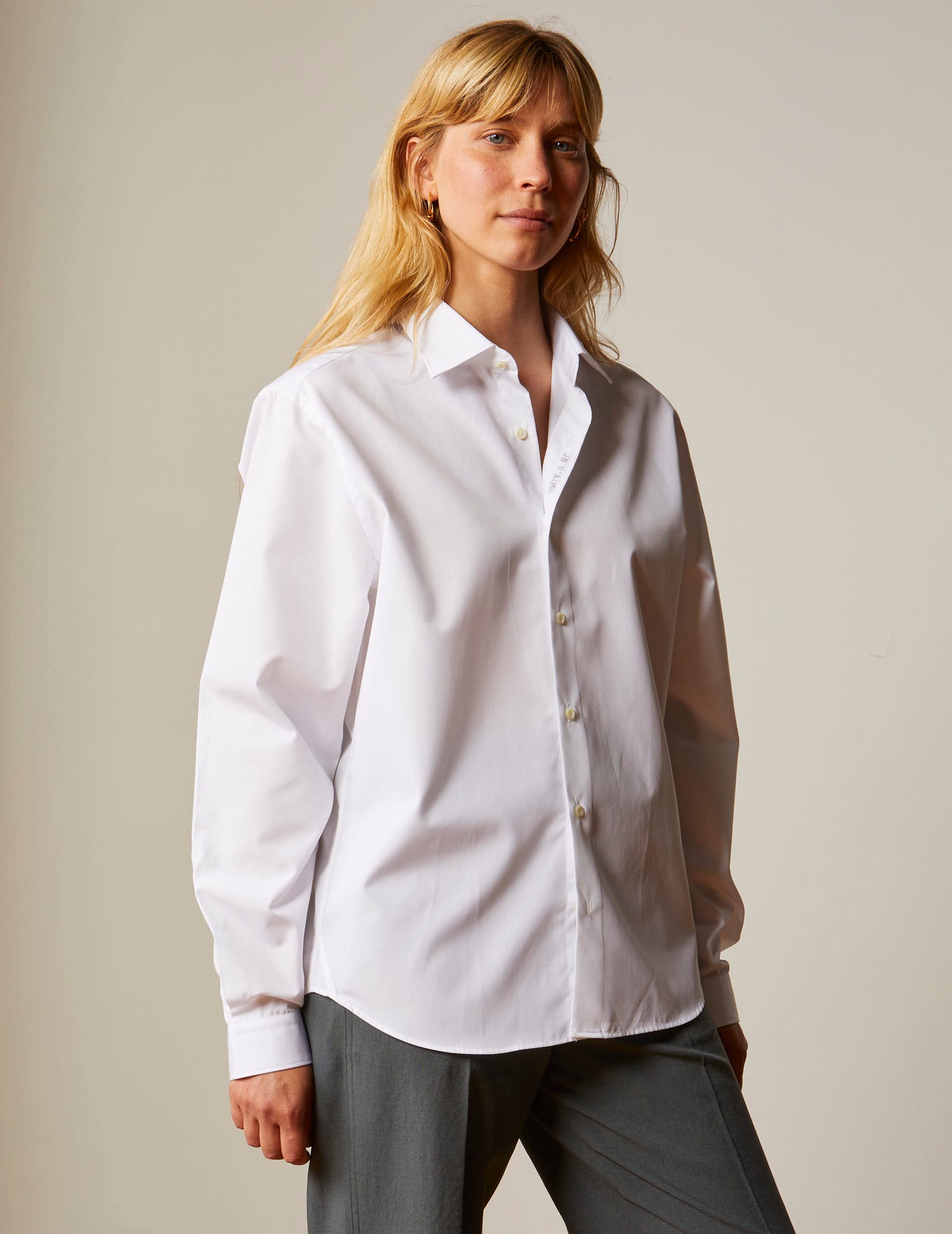 - Add to cart Semi-fitted white hidden buttons placket shirt 41