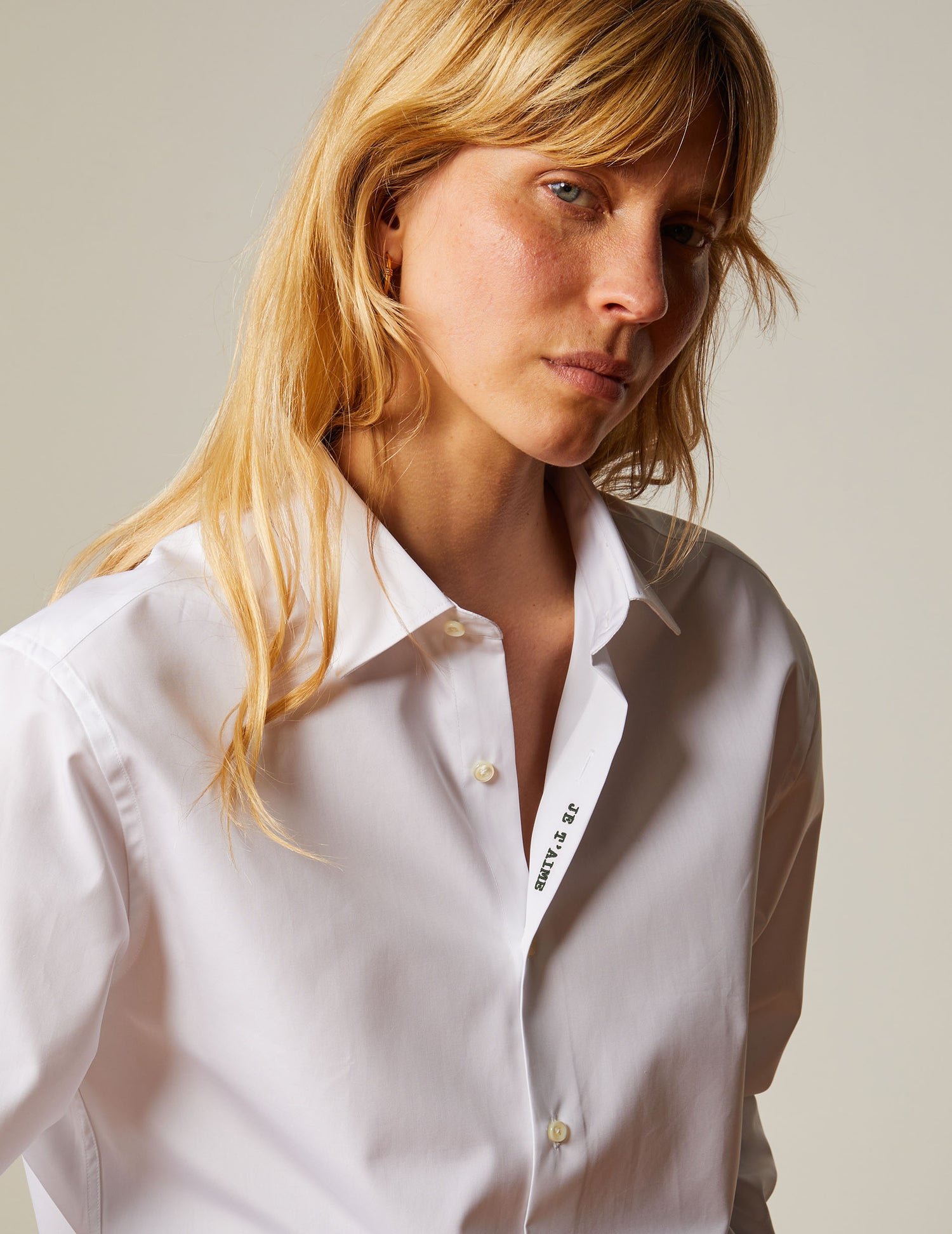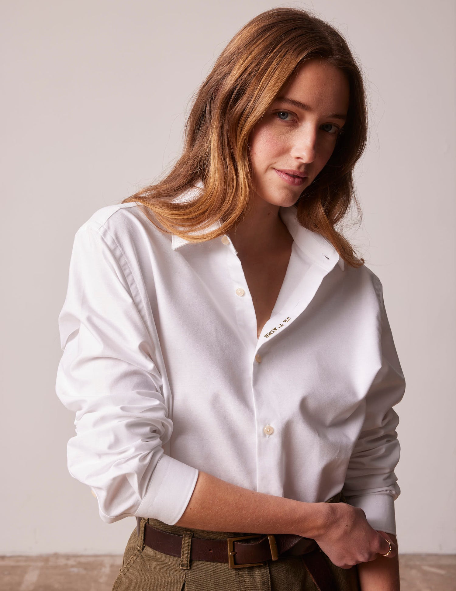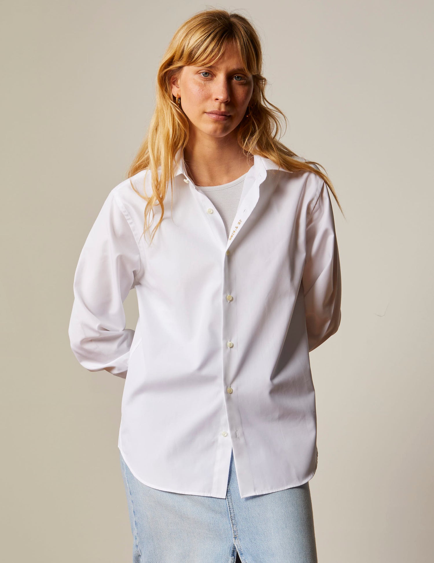 - Add to cart Semi-fitted white hidden buttons placket shirt 41L