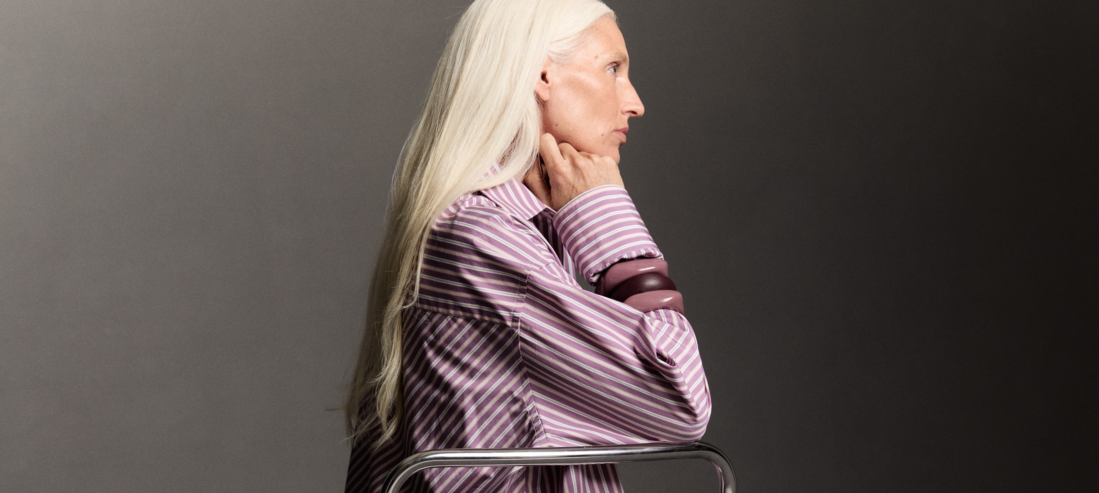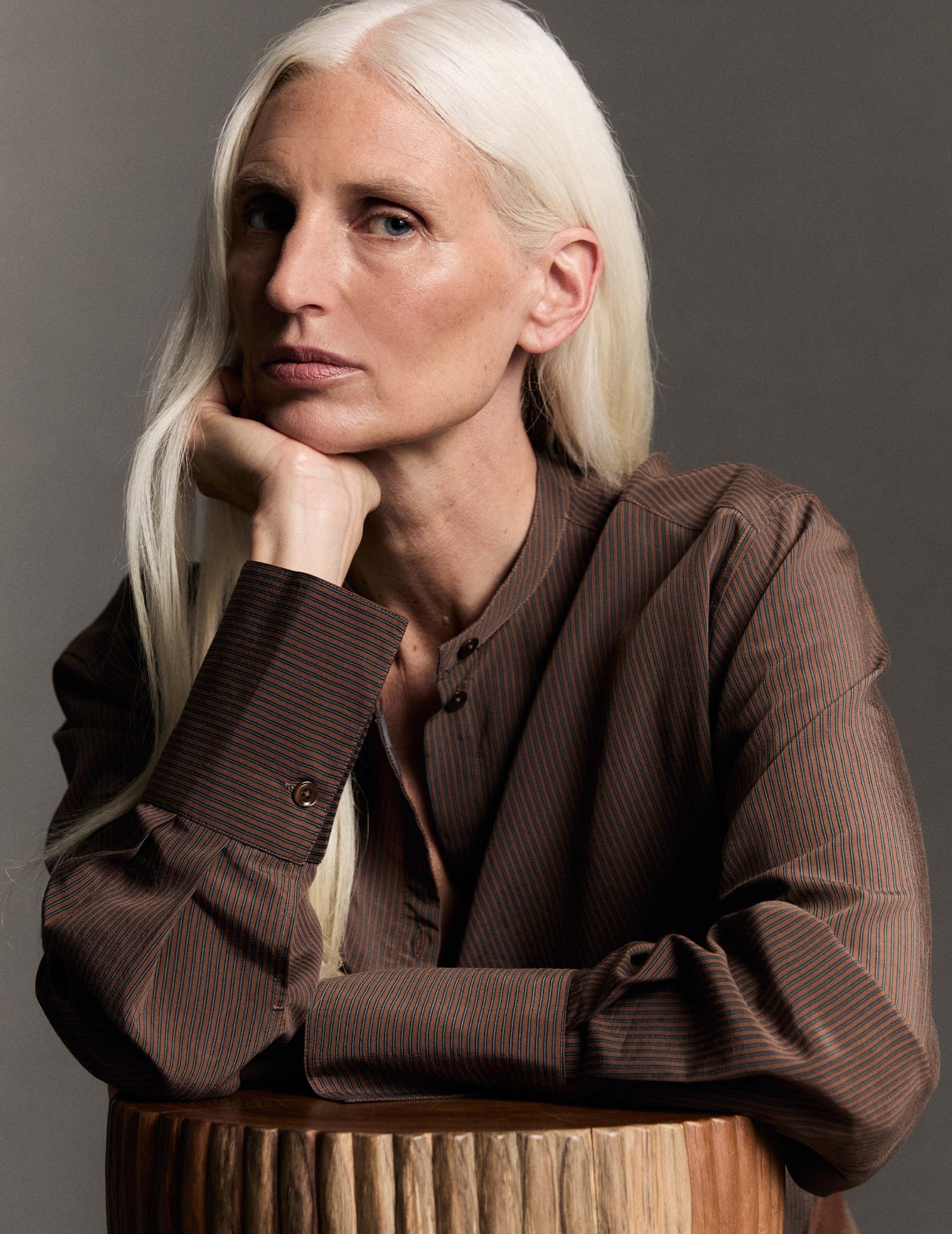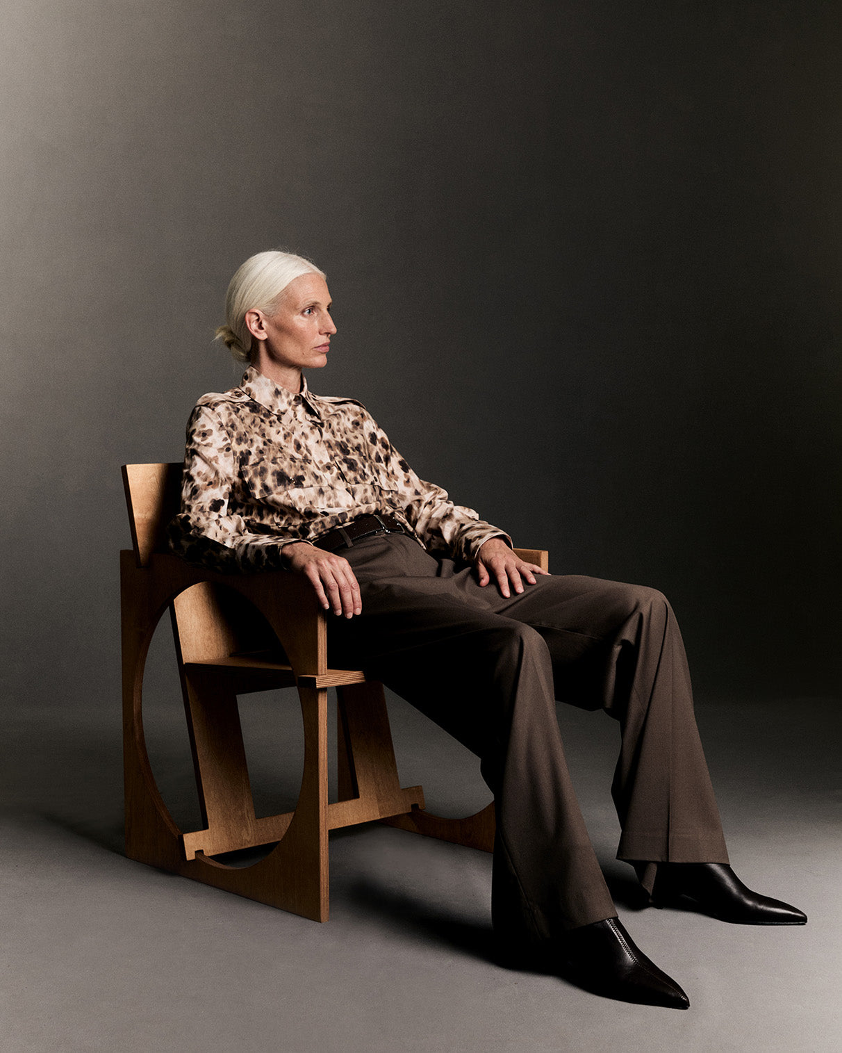 Elle s’approprie des silhouettes aux lignes presque architecturales, qu’elle revêt avec une sensualité discrète et une douceur affirmée. Elle évolue dans un univers minimaliste aux formes et matières bien choisies, prolongement naturel de ses mouvements.