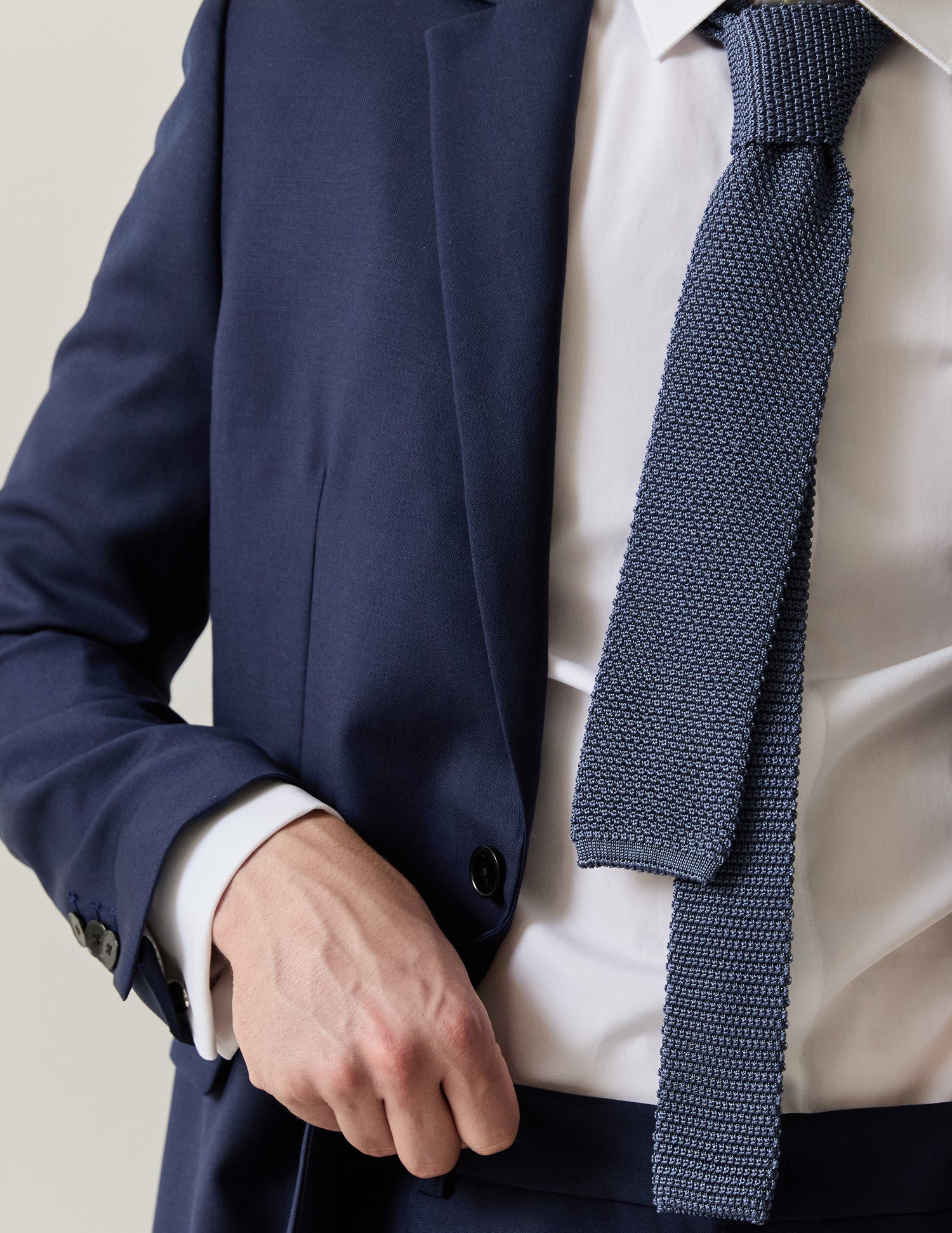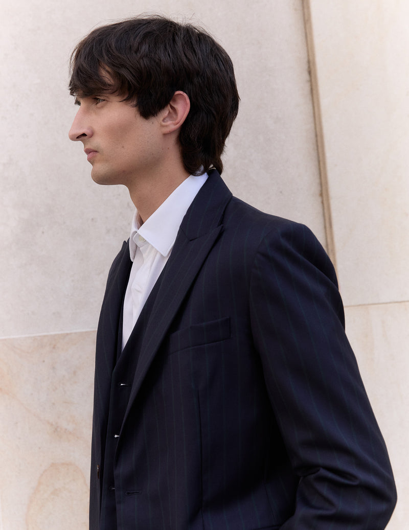 En laine vierge marine, nos costumes sont conçus pour durer, pensés pour accompagner les moments précieux de la vie.