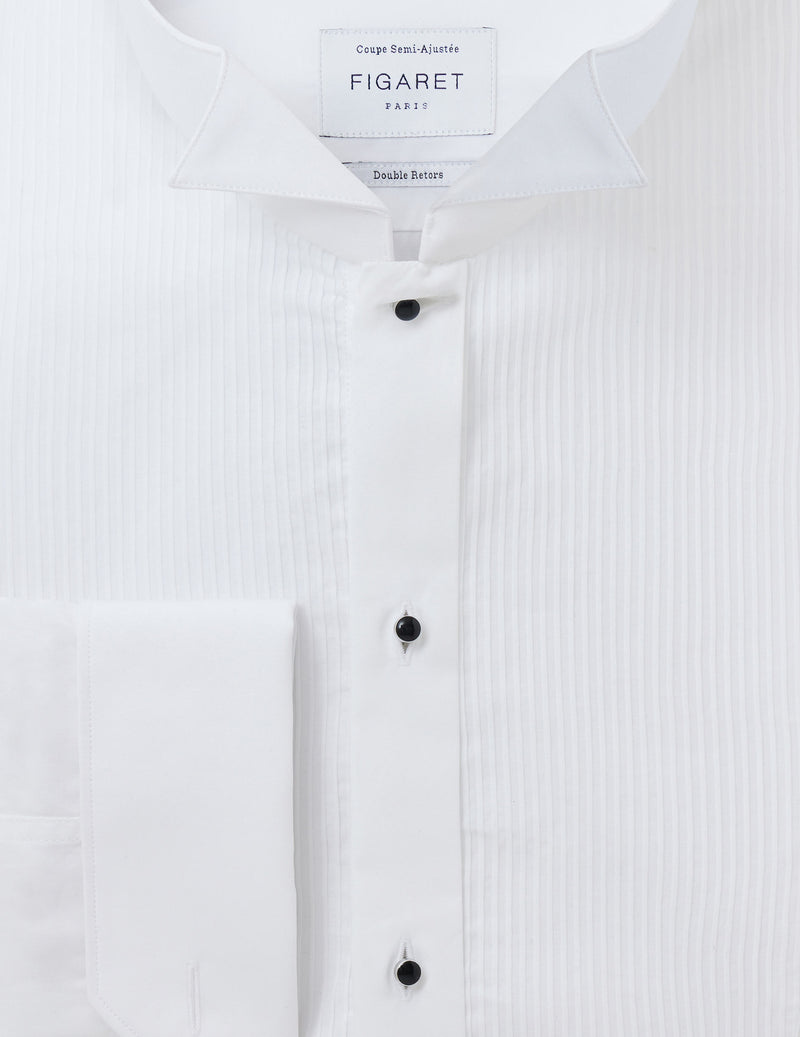 Les Chemises Cérémonie sont une évidence pour les moments précieux de la vie. Tissu d’exception, raffinement des détails, elles font le panache de Figaret et se marient à la perfection avec notre collection d’accessoires.