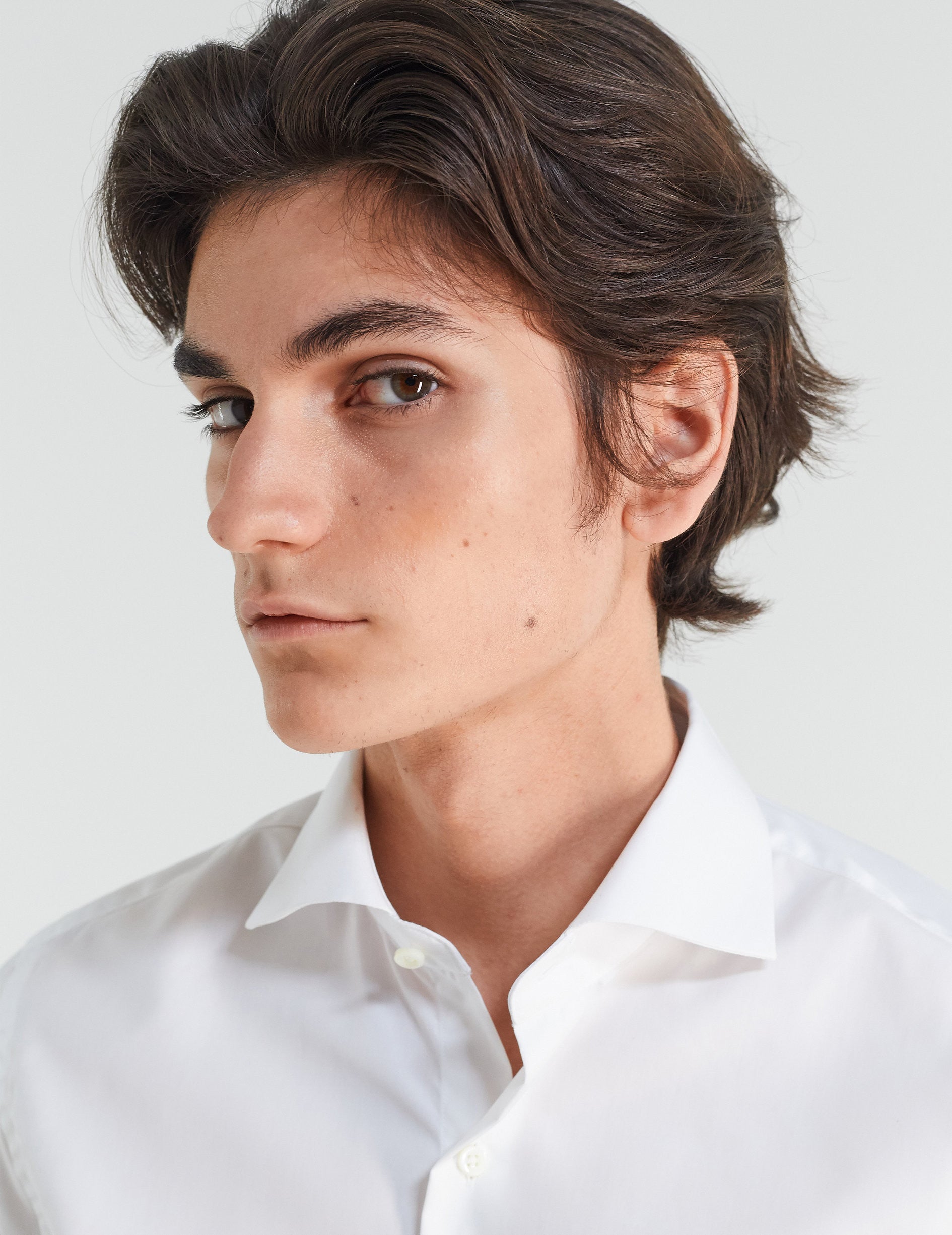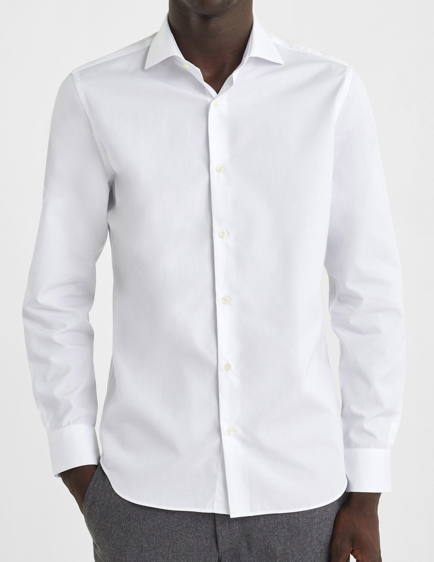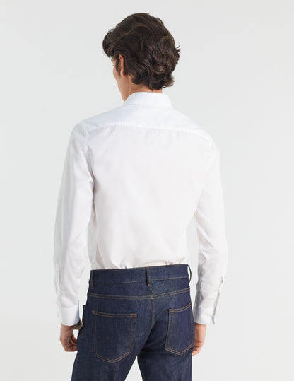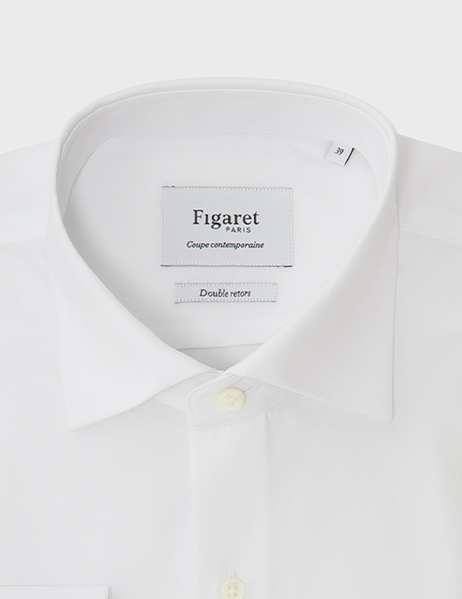 Chemise Ajustée Voyage blanche Popeline - Col Italien - Repassage facile