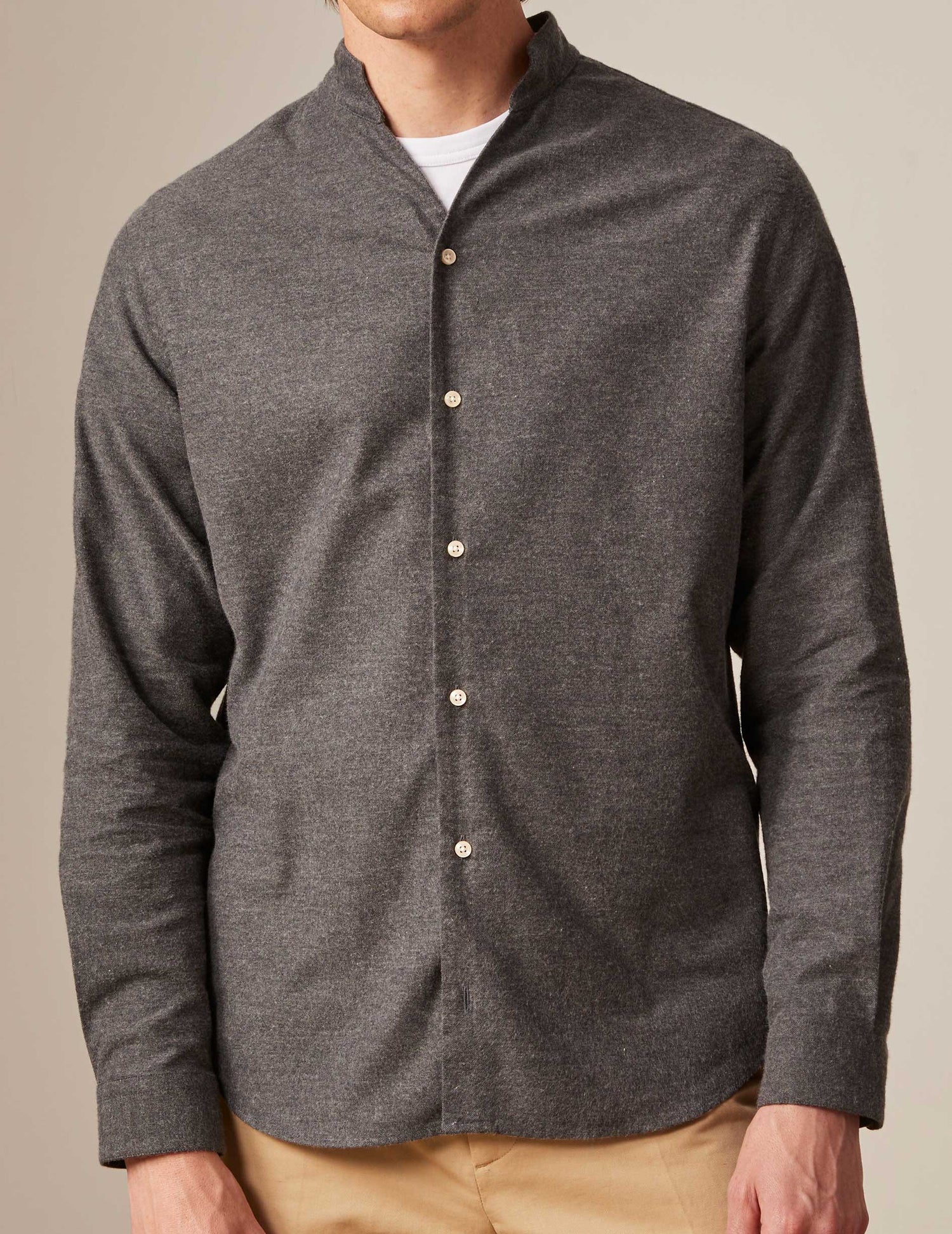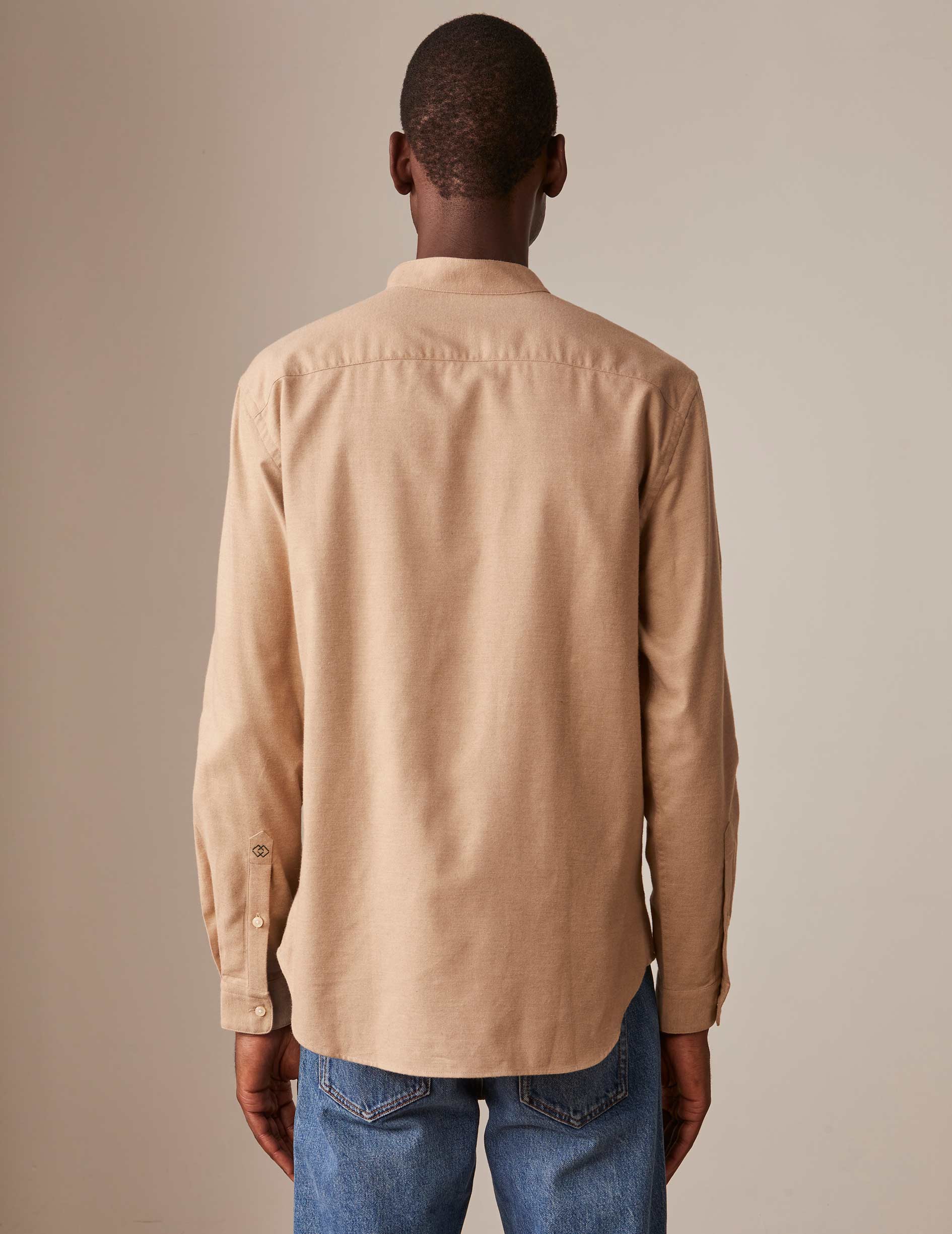 Chemise Carl en coton cachemire beige Flanelle - Col Droit ouvert