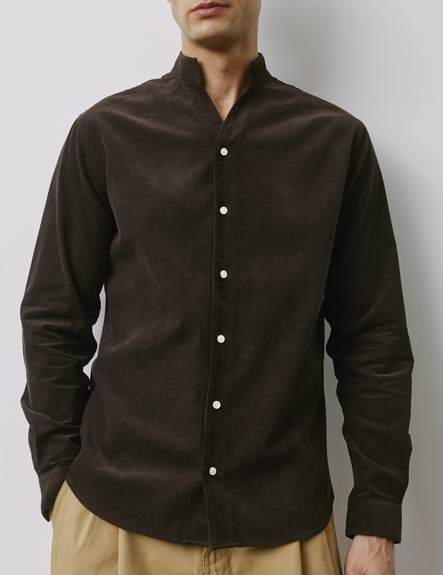Chemise Carl en velours marron Velours - Col Droit ouvert