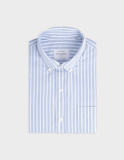 - Col américain : col boutonné casual-chic. Les boutons qui retiennent les pointes font la particularité de ce col. À porter fermé ou ouvert sur un t-shirt. Un essentiel pour une allure décontractée.