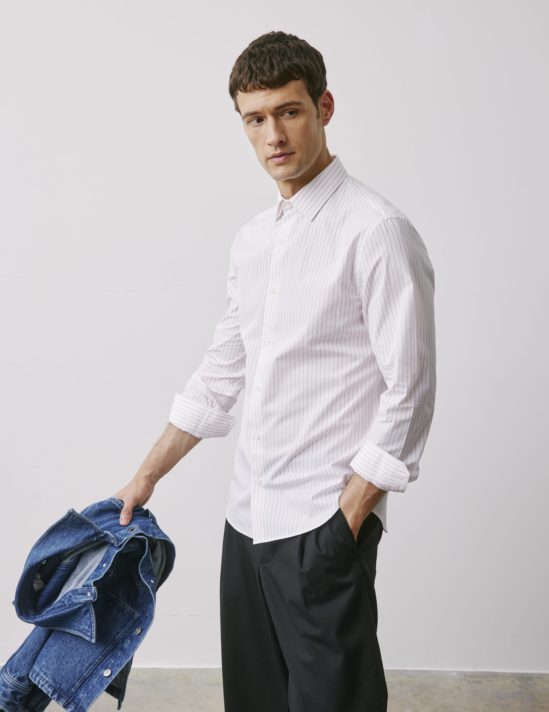 Chemise ajustée rayée rouge Popeline - Col Figaret