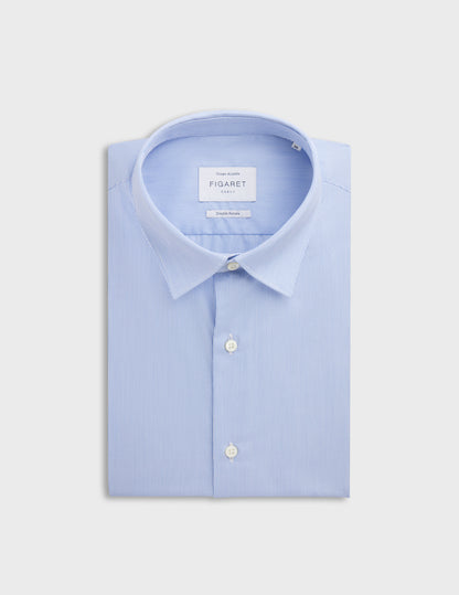 Chemise Ajustée rayée bleue Popeline - Col Figaret