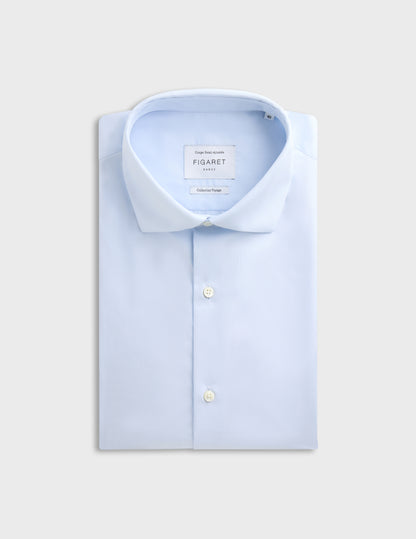 Chemise semi-ajustée Voyage bleue Popeline - Col Italien - Repassage facile