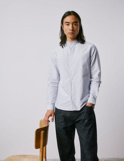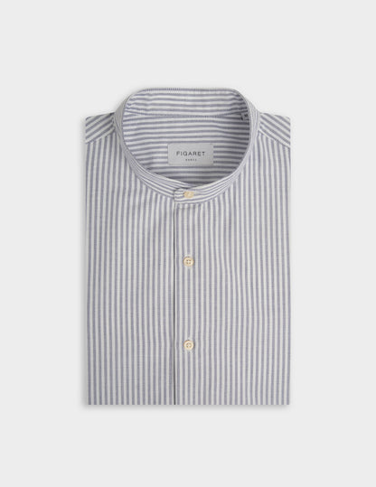 Chemise Herwin rayée bleu marine Oxford - Col Officier