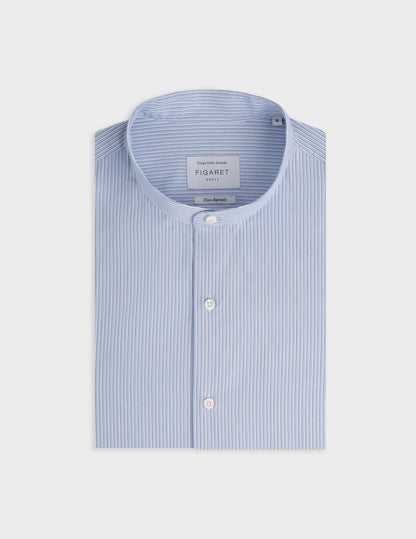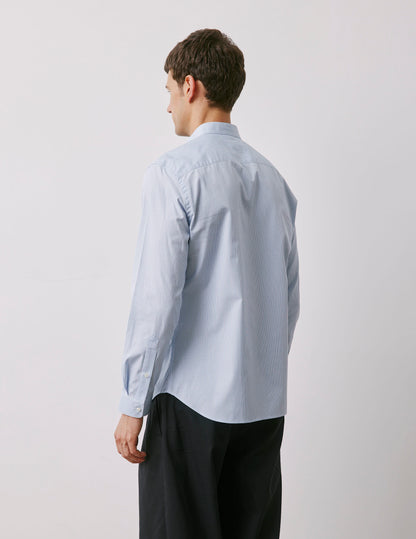 Chemise Herwin rayée bleue Popeline - Col Officier