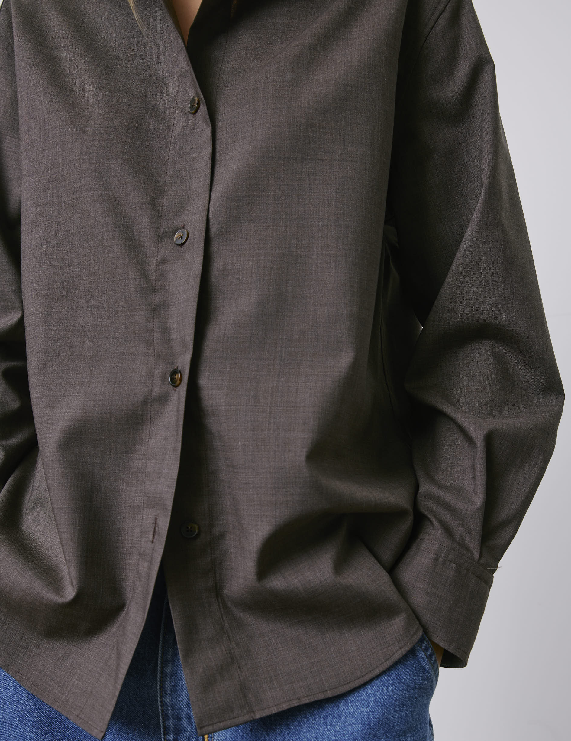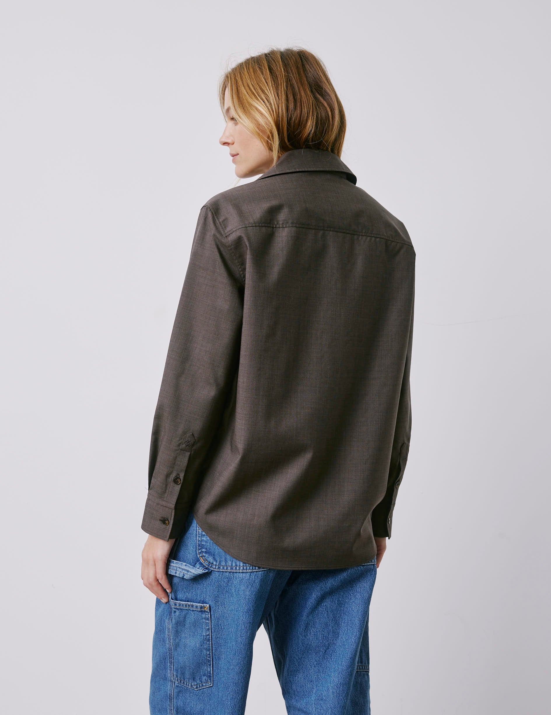 Chemise Léanna en laine vierge marron Toile - Col Chemise