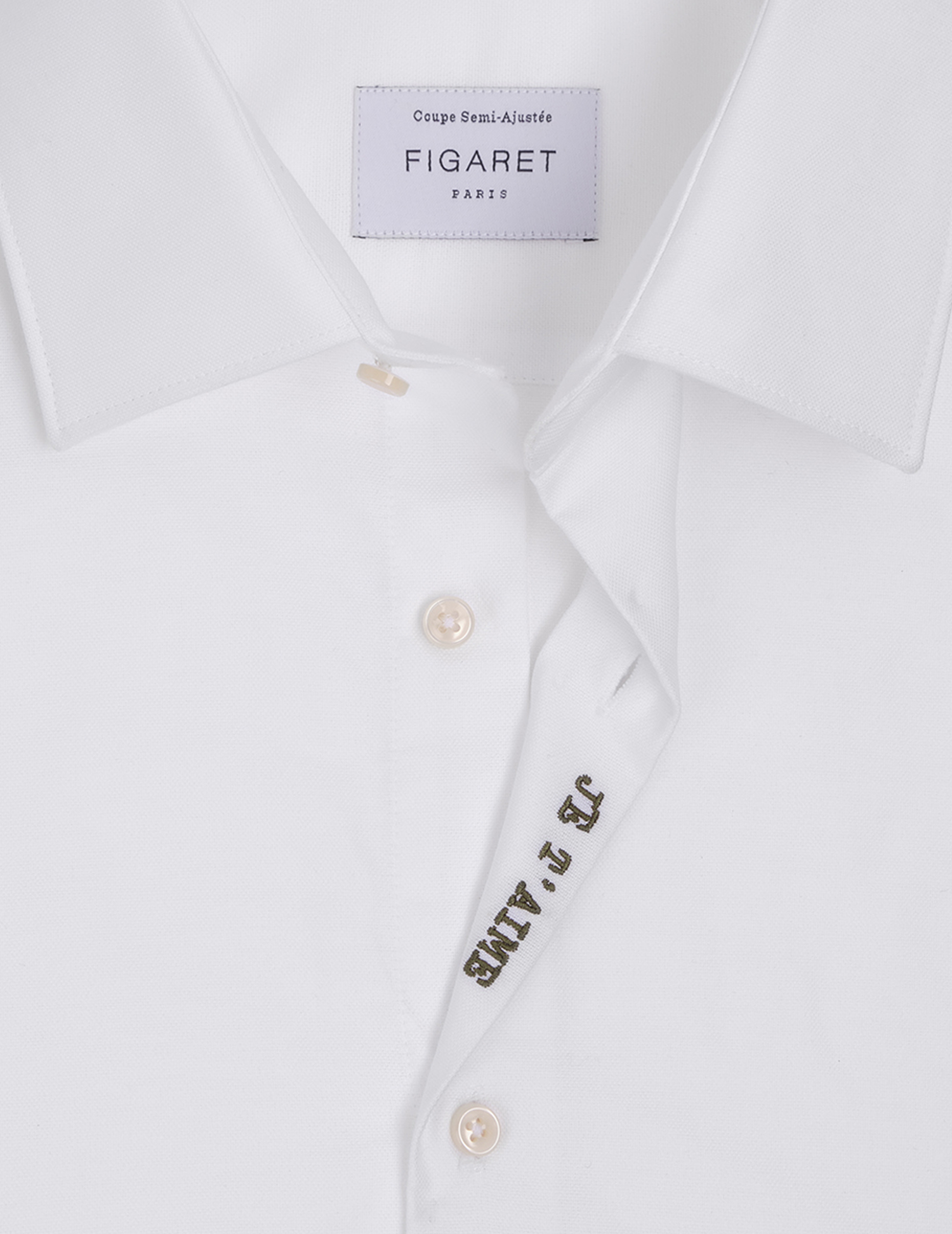 Chemise mixte "Je t'aime" blanche Oxford - Col Figaret